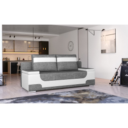 Area is a modern, functional and original sofa for fans of original solutions. Geometric shape, stylish decorations on the upholstery and cushions, original insert in a different shade of upholstery located in the lower part of the sofa, on the sides and cushions - all this gives the Area sofa, an extremely original flair. It is also worth mentioning the wide armrests, properly profiled backrest and additional, spacious cushions, which increase the comfort of use. Area is a piece of furniture with dimensions of 200 x 92 x 90 cm - for resting during the day, and thanks to the sleeping function - a bed of 200 x 140 cm with an additionally spacious container for bedding. The whole is supported by a DL opening mechanism. Thanks to the use of bonel and T25 foam, the seat of the sofa is extremely flexible and soft. Simple form, sleek construction and modern design - this is what the Area sofa is like. We are in favor of it!