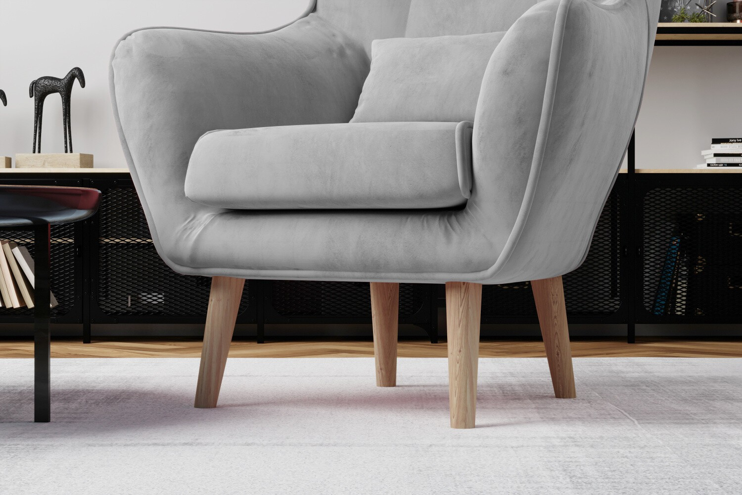 Arti to a unique and elegant armchair with dimensions of 80 x 91 x 105 cm, which will be an original element of any interior - be it a bedroom or living room. Among the distinguishing features of the Arti model are its upholstered back, contoured backrest and high armrests. However, the real character is added by 22 centimeter wooden legs, a cushion attached to the furniture, as well as stylish quilting on the backrest. Arti armchair offers a wide range of color variations. The product is available in all fabrics from the ELTAP collection. Also worth noting is the type of filling of the seat and backrest. The combination of HR foam with T25 causes a unique experience of comfort, while protecting the spine. Arti is a unique armchair that certainly draws attention to itself. We recommend you to get acquainted with our product.