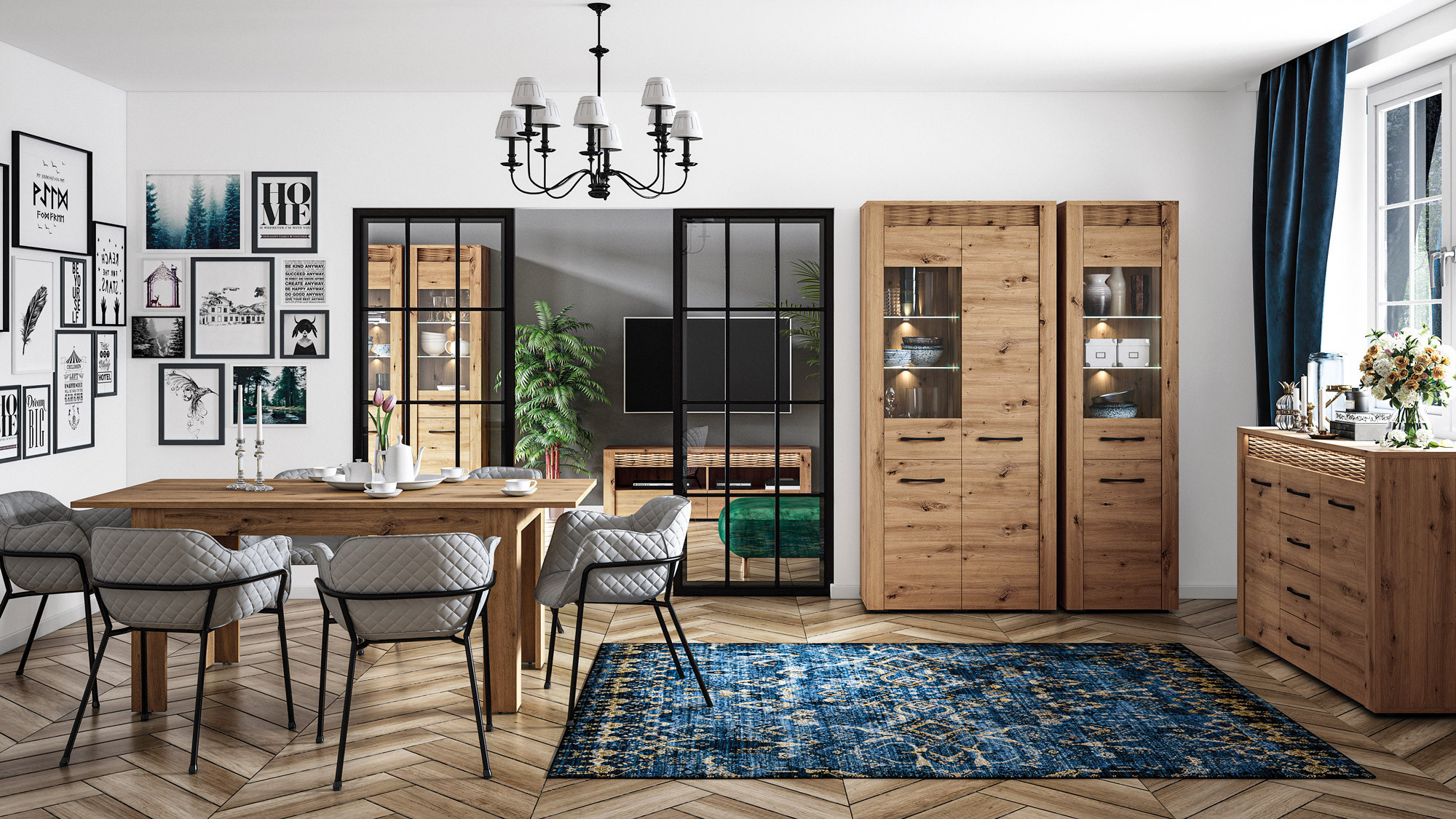 Witryna ARTIS 03 wprowadzi do Twojego wnętrza dużo świeżości oraz elegancji. Witryna posiada drzwiczki zarówno przeszklone, jak i wykonane z wysokiej jakości płyty meblowej. W zależności od wnętrza, w jakim zostanie postawiona witryna można w niej umieścić książki, pamiątki, zastawę obiadową i wiele więcej.