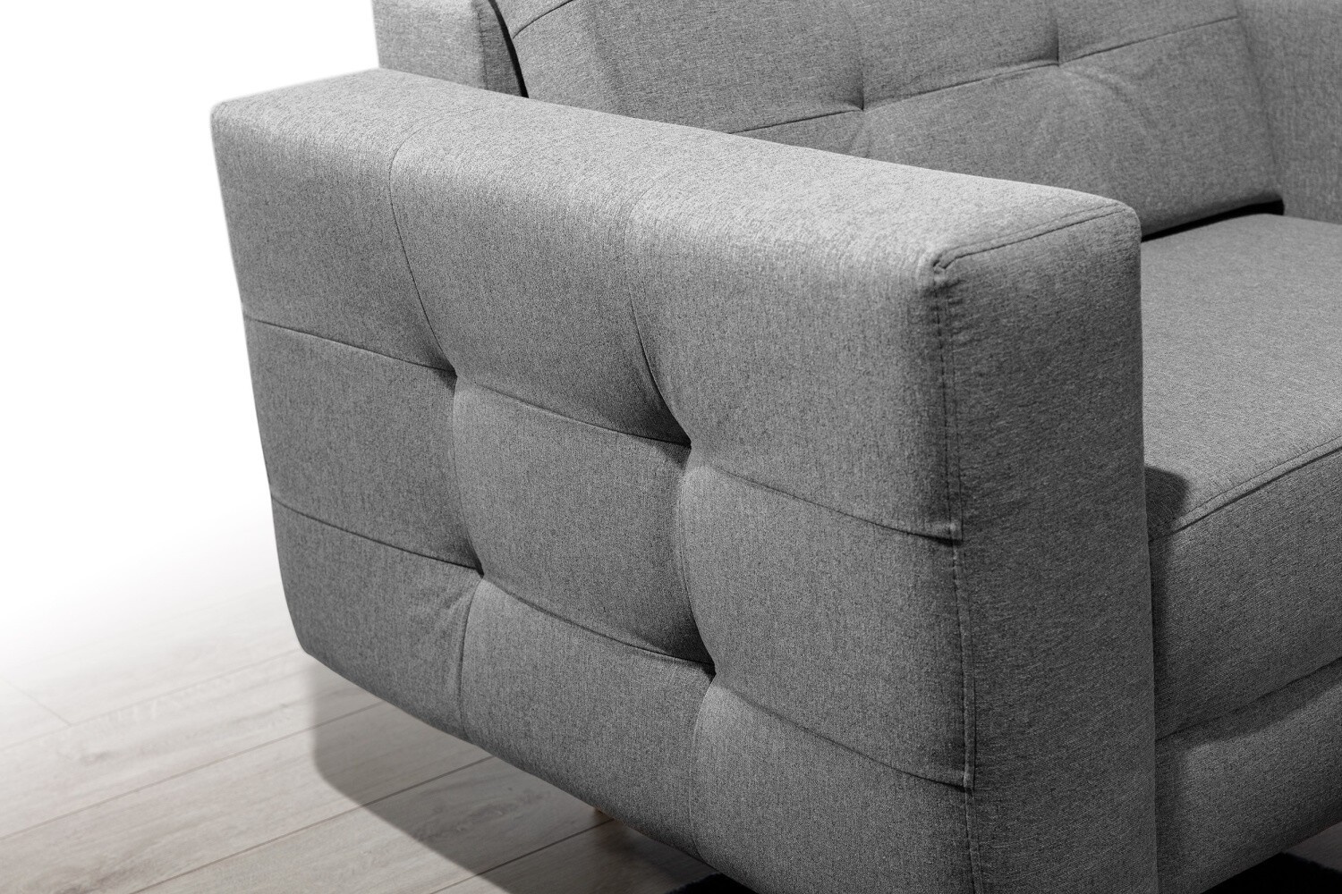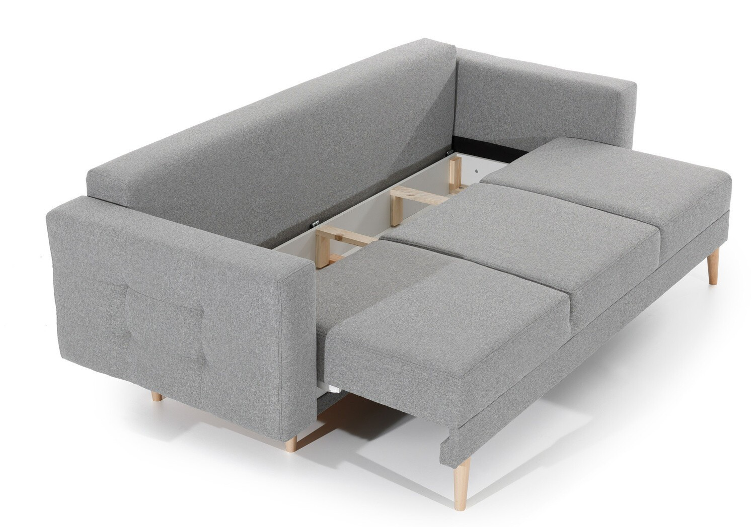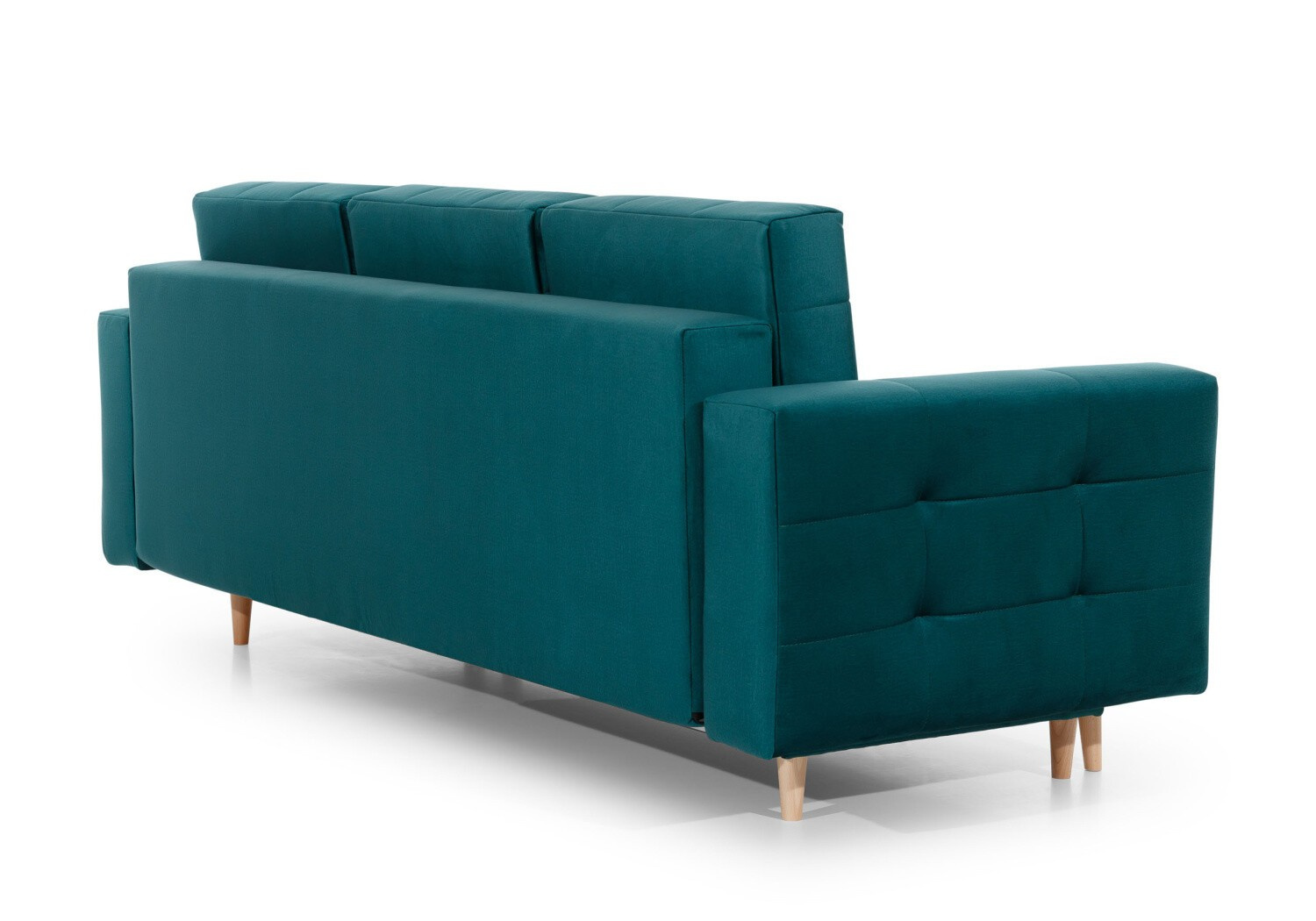 Asgard is an elegant and very stylish sofa for lovers of beautifully arranged interiors. The classic shape, stylish quilting on the cushions and sides give the sofa a unique and cozy character. Asgard is a piece of furniture with dimensions of 233 x 92 x 93 cm - for lounging during the day, and also thanks to the sleeping function - a bed of 133 x 196 cm with an additionally spacious bedding container supported by the DL opening mechanism. Thanks to the use of corrugated spring and T30 foam, the seat of the sofa is extremely flexible, soft and resistant to any kind of deformation. Simple form, elegant finish and secure construction - this is what the Asgard lounge furniture is. It is worth having such a sofa in your apartment to enjoy exceptional comfort and style.