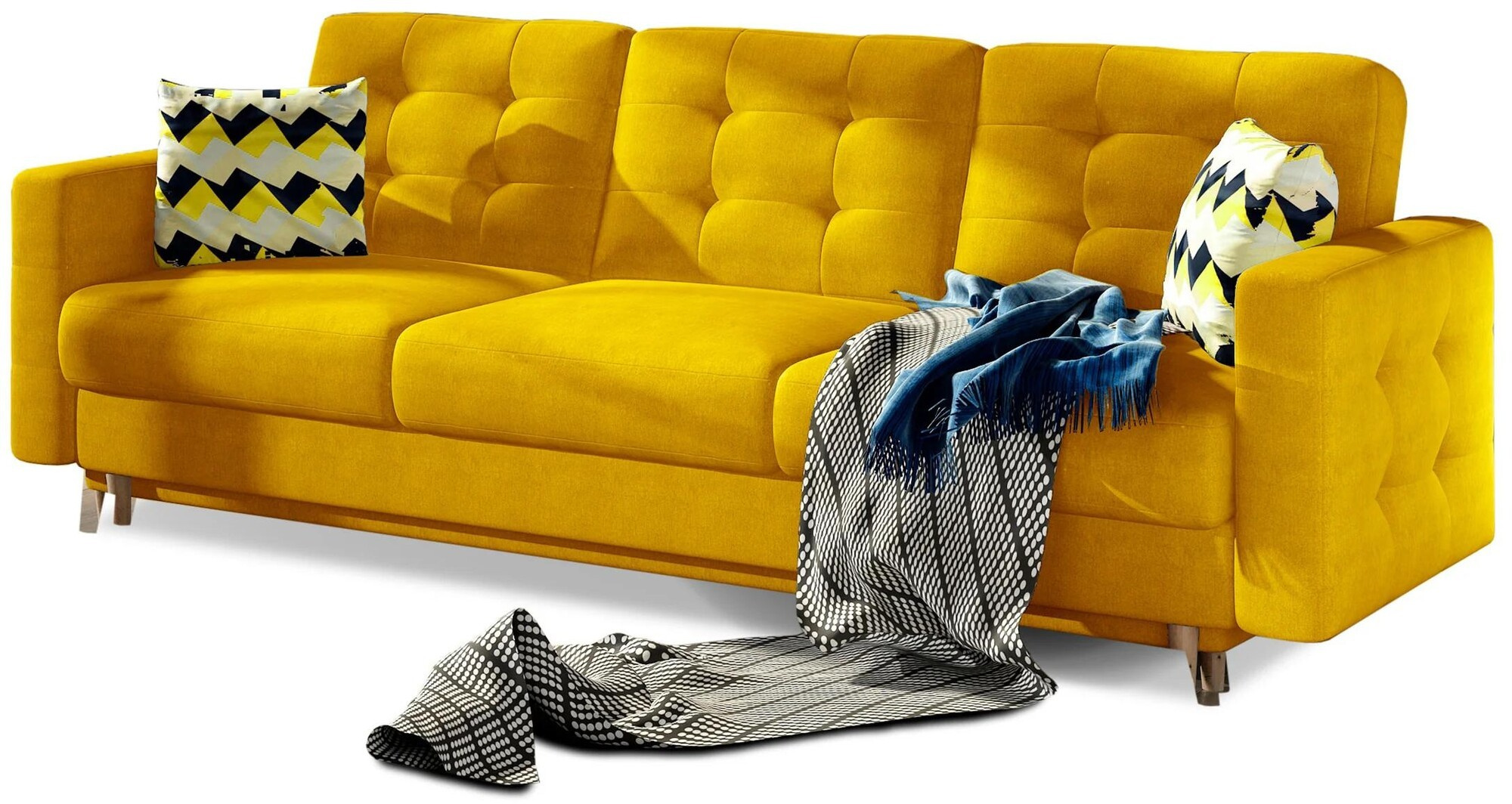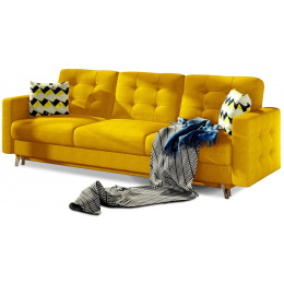 Asgard is an elegant and very stylish sofa for lovers of beautifully arranged interiors. The classic shape, stylish quilting on the cushions and sides give the sofa a unique and cozy character. Asgard is a piece of furniture with dimensions of 233 x 92 x 93 cm - for lounging during the day, and also thanks to the sleeping function - a bed of 133 x 196 cm with an additionally spacious bedding container supported by the DL opening mechanism. Thanks to the use of corrugated spring and T30 foam, the seat of the sofa is extremely flexible, soft and resistant to any kind of deformation. Simple form, elegant finish and secure construction - this is what the Asgard lounge furniture is. It is worth having such a sofa in your apartment to enjoy exceptional comfort and style.