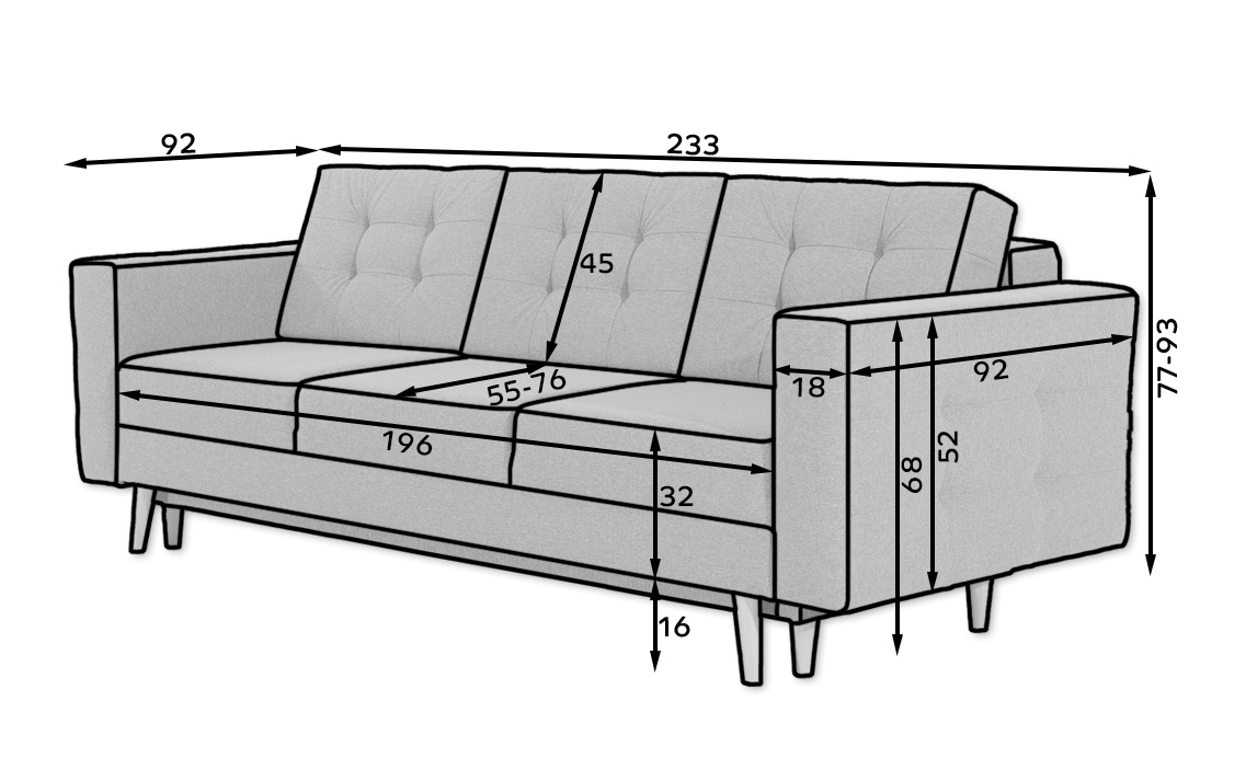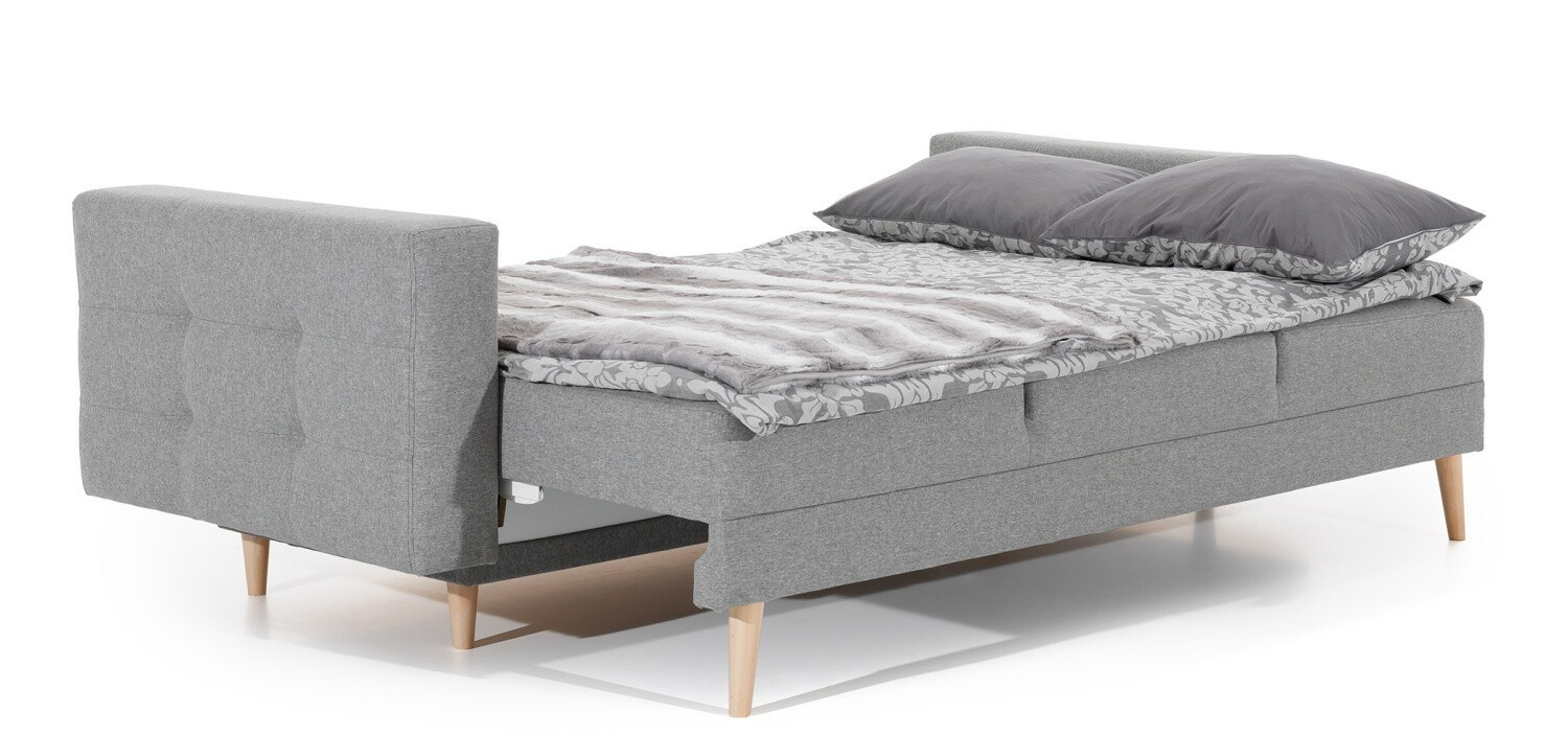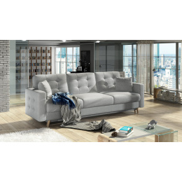 Asgard is an elegant and very stylish sofa for lovers of beautifully arranged interiors. The classic shape, stylish quilting on the cushions and sides give the sofa a unique and cozy character. Asgard is a piece of furniture with dimensions of 233 x 92 x 93 cm - for lounging during the day, and also thanks to the sleeping function - a bed of 133 x 196 cm with an additionally spacious bedding container supported by the DL opening mechanism. Thanks to the use of corrugated spring and T30 foam, the seat of the sofa is extremely flexible, soft and resistant to any kind of deformation. Simple form, elegant finish and secure construction - this is what the Asgard lounge furniture is. It is worth having such a sofa in your apartment to enjoy exceptional comfort and style.