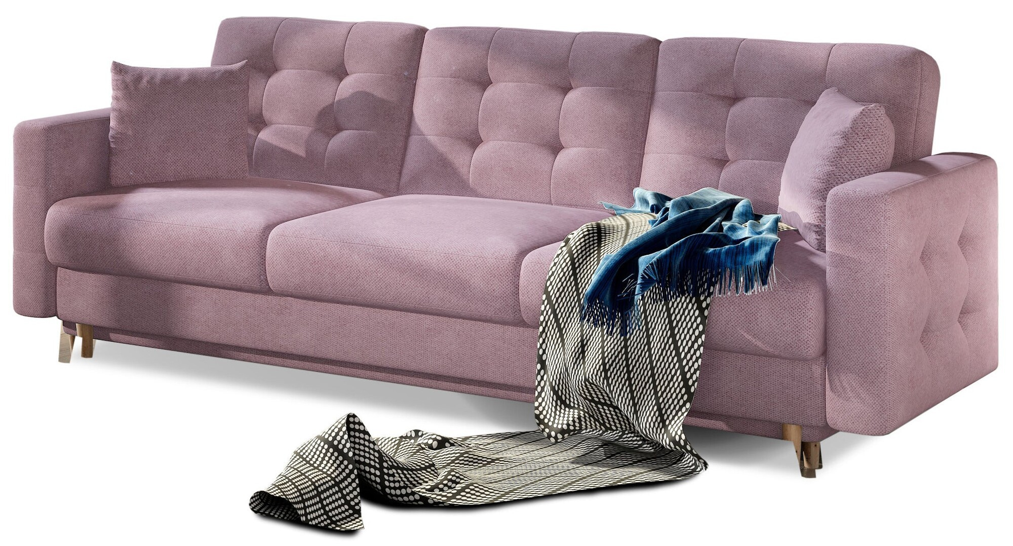 Asgard is an elegant and very stylish sofa for lovers of beautifully arranged interiors. The classic shape, stylish quilting on the cushions and sides give the sofa a unique and cozy character. Asgard is a piece of furniture with dimensions of 233 x 92 x 93 cm - for lounging during the day, and also thanks to the sleeping function - a bed of 133 x 196 cm with an additionally spacious bedding container supported by the DL opening mechanism. Thanks to the use of corrugated spring and T30 foam, the seat of the sofa is extremely flexible, soft and resistant to any kind of deformation. Simple form, elegant finish and secure construction - this is what the Asgard lounge furniture is. It is worth having such a sofa in your apartment to enjoy exceptional comfort and style.