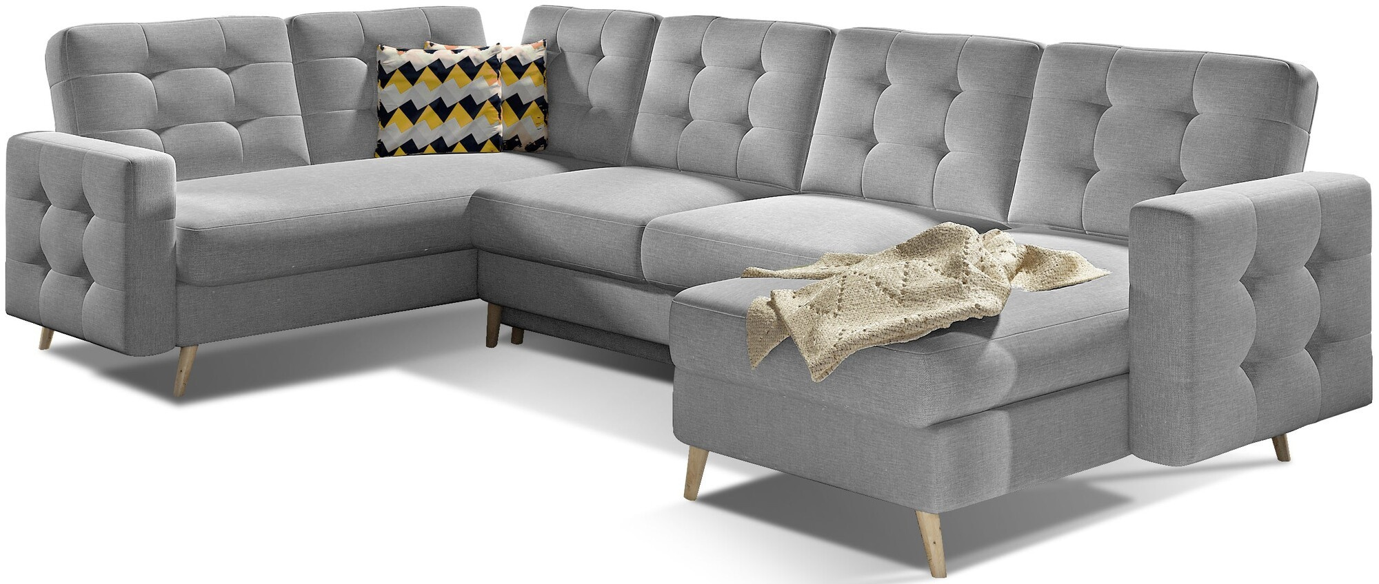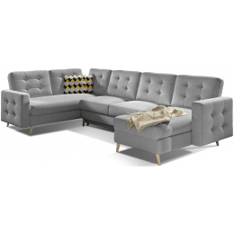 Asgard U is a spacious, comfortable and upholstered corner unit of a considerable size with dimensions of 326x202x93 cm. The U-shaped piece of furniture has a comfortable, soft seat made of a durable wave spring, as well as elastic T30 foam, which is resistant to damage. Our corner unit is equipped with asleeping function and a spacious storage compartment for bedding. After unfolding the furniture with the DL automated mechanism, we gain 282 x 120 cm of space for night rest. The characteristics features of the Asgard U corner unit include: a high, 48 cm seat, an upholstered backrest, elegant quilting and delicate stitching on the back and sides of the corner unit. In addition, we can also list: high, wooden, turned legs as well as a multitude of available colour variants. Asgard U is the quintessence of comfort and good style that will fit perfectly into many interiors.