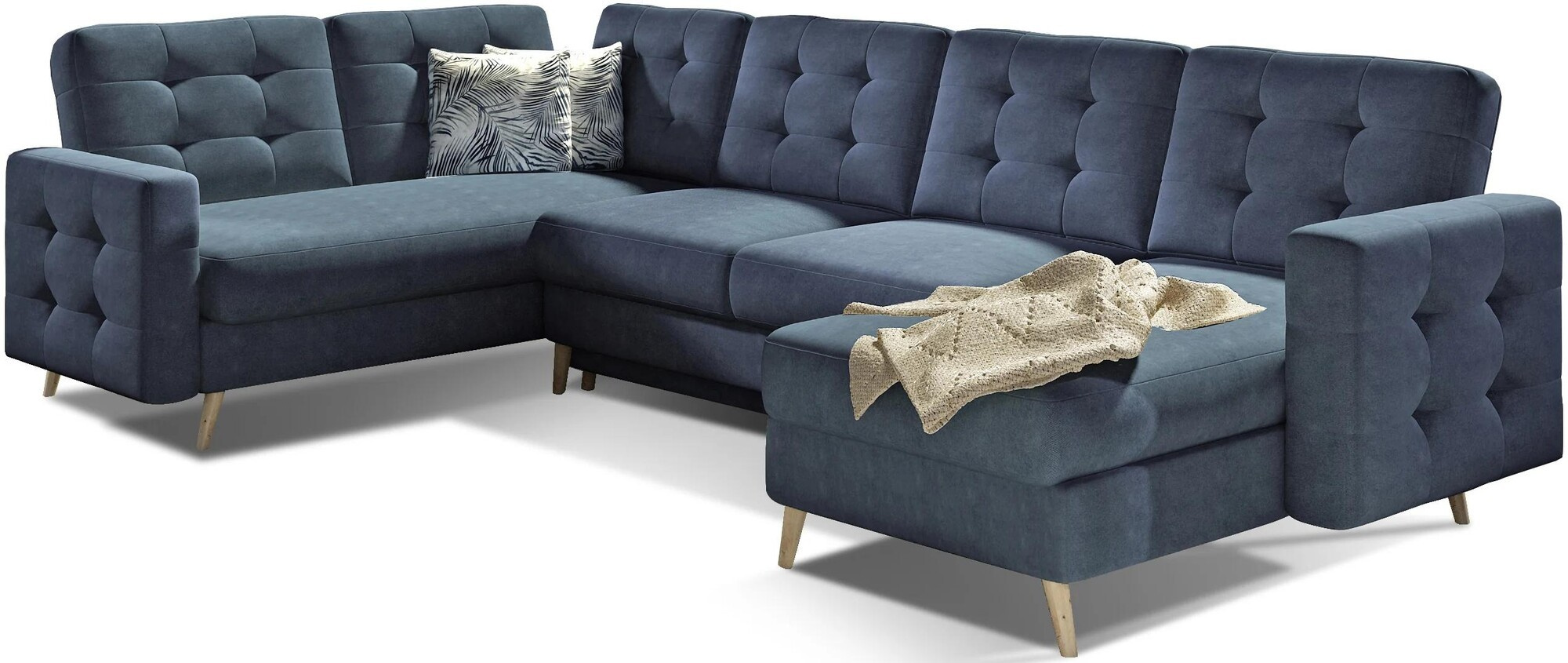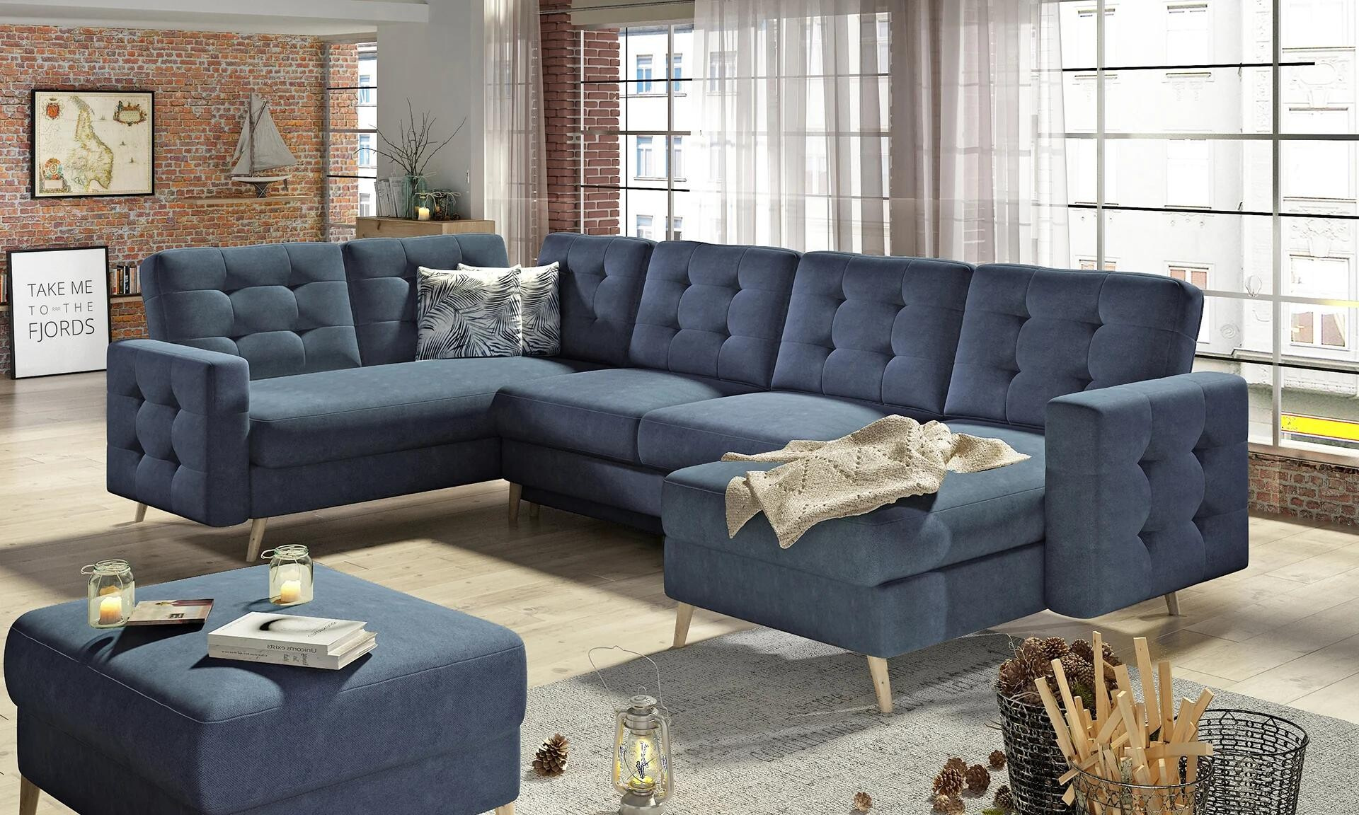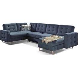 Asgard U is a spacious, comfortable and upholstered corner unit of a considerable size with dimensions of 326x202x93 cm. The U-shaped piece of furniture has a comfortable, soft seat made of a durable wave spring, as well as elastic T30 foam, which is resistant to damage. Our corner unit is equipped with asleeping function and a spacious storage compartment for bedding. After unfolding the furniture with the DL automated mechanism, we gain 282 x 120 cm of space for night rest. The characteristics features of the Asgard U corner unit include: a high, 48 cm seat, an upholstered backrest, elegant quilting and delicate stitching on the back and sides of the corner unit. In addition, we can also list: high, wooden, turned legs as well as a multitude of available colour variants. Asgard U is the quintessence of comfort and good style that will fit perfectly into many interiors.