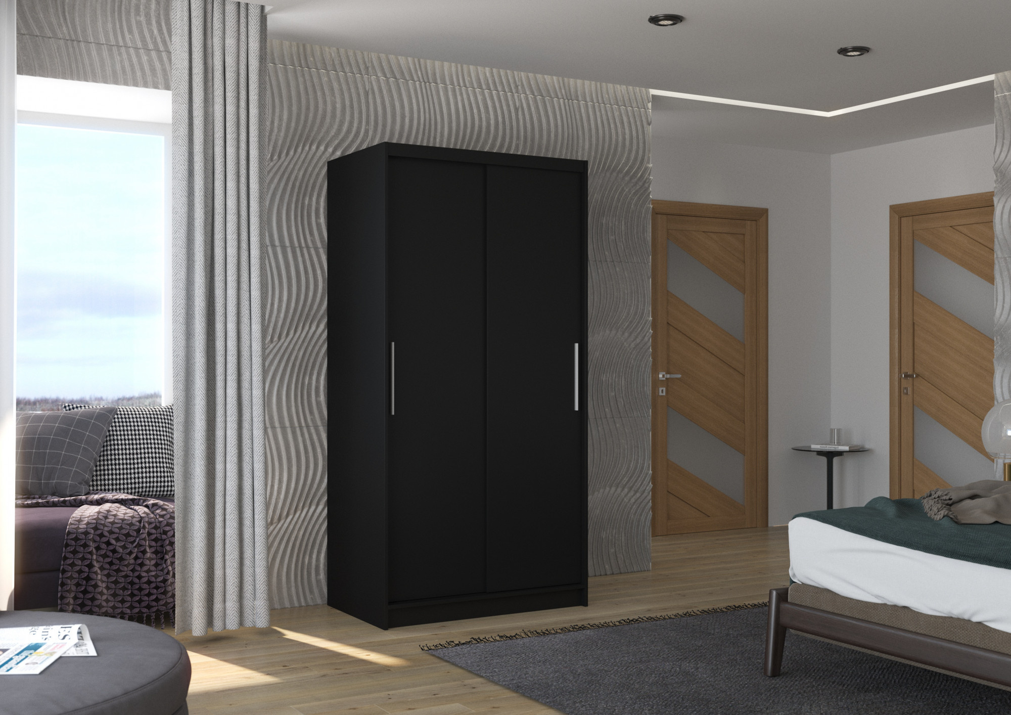ASTEN 100 tolóajtós ruhásszekrény Fekete+Fekete