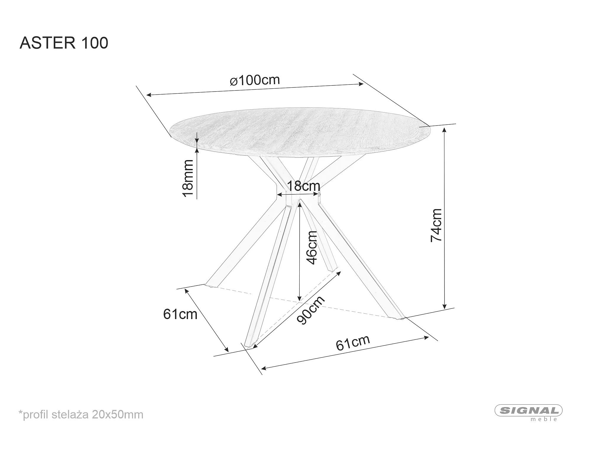 ASTER étkezőasztal 100 cm, Tölgy/Fekete matt