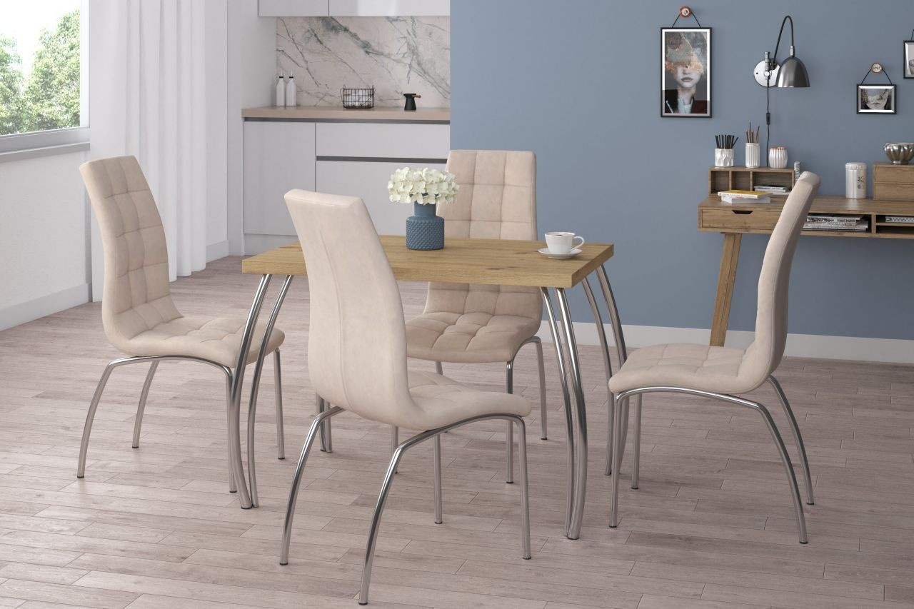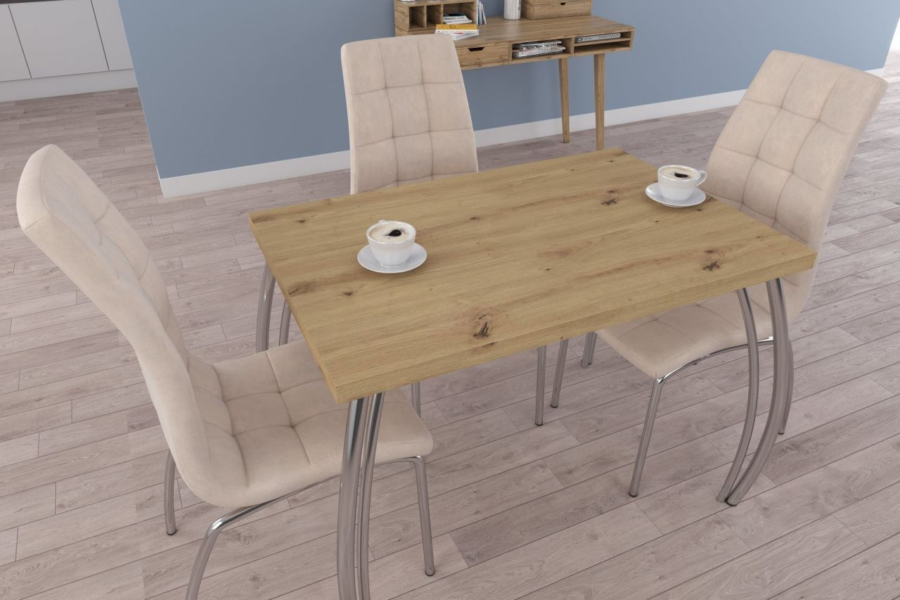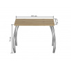 Méretek: - hosszúság: 101 cm - szélesség: 67 cm - magasság: 76 cm - lap vastagsága: 3,8 cm Anyag: - lap: laminált lap - lap szélei: ABS műanyaggal lezárva - lábak: krómozott acél Szín: - lap: artisan tölgy - lábak: króm