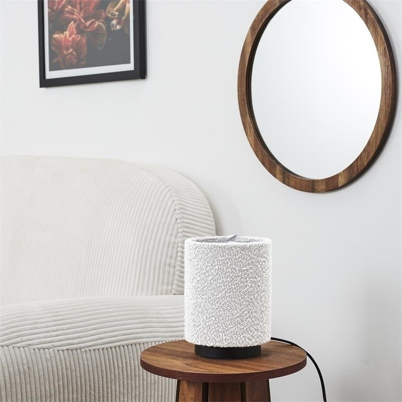 Az asztali lámpa fehér boucle lámpaernyővel elegáns kiegészítő, amely ötvözi a modern dizájnt a klasszikus bájjal. A fém alap és a boucle szövetből készült fehér lámpaernyő kombinációja otthonos légkört teremt minden belső térben. A lágy, puha fény miatt a lámpa tökéletesen illeszkedik a nappaliba, hálószobába vagy irodába, melegséget és stílust kölcsönözve a helyiségnek.