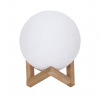 Gömb alakú asztali lámpa fa talapzaton, skandináv stílusú szobai pontvilágítás. A lámpa fehér lámpaernyője kapcsolóval van felszerelve, amelynek köszönhetően nemcsak bekapcsoljuk a lámpát, hanem a fény színét is megváltoztatjuk.