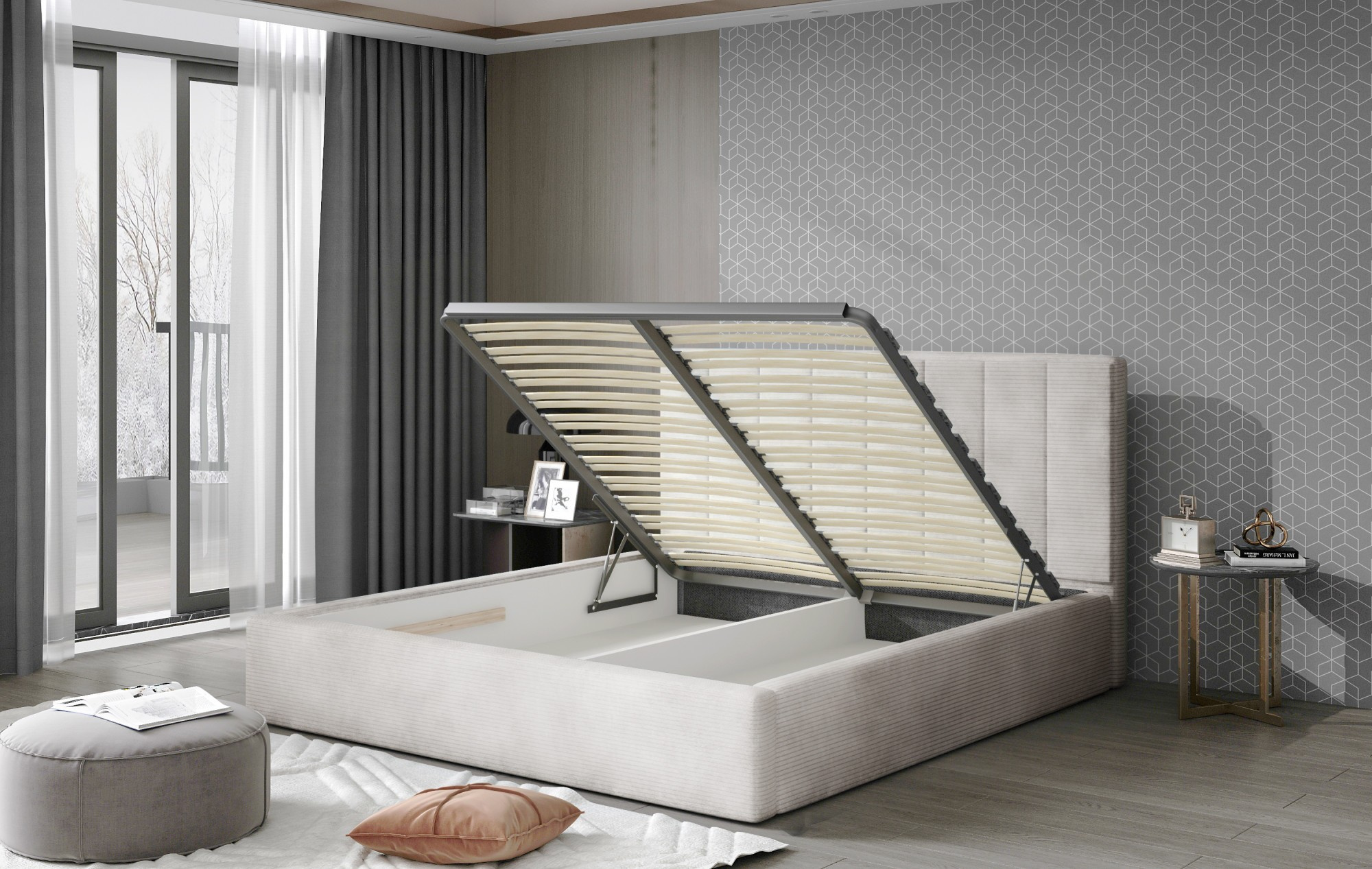 Audrey is a classically styled, tasteful and functional bed, which is available in four dimensions 140/ 160/ 180/ 200 x 200 cm - this certainly gives you a very large space to rest. Audrey's design is enriched with an elegant high headboard with a soft finish, which will be the perfect support for daytime relaxation. Our bed is available in two variants: with a rolled, wooden frame or with a metal frame with a gas lift, which gives you a spacious bedding container that rises very easily and quietly. For an additional distinction deserves the fact that the furniture is available in many color versions, which can certainly give you a free hand in arranging the bedroom in your own way. Audrey is in a class of its own - comfort, design, style... Here it is the whole that counts, which comes off simply perfect!