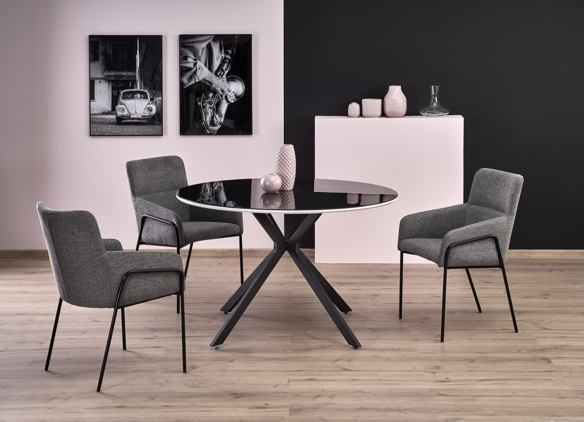 méretek: fi120/76 cm, anyag: üveg / lakkozott MDF / porszórt acél, szín: asztallap - fekete / fehér, lábak - fekete