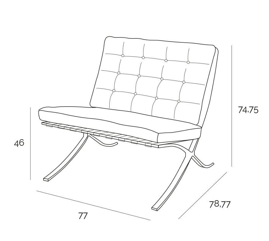 A BA1 szék a Barcelona szék dizájnja által inspirált. A Barcelona egy 1929-ben tervezett szék, amelyet megrendelésre készítettek és a barcelonai kiállításon a német pavilonban helyeztek el.A jellegzetesen "X" alakúra hajlított krómozott alap és a négyzetesen steppelt természetes bőr a szék legjellemzőbb vonásai. Ennek a széknek a kiegészítője a Barcelona Ottoman és a Barcelona asztal.,Fotel teljesen természetes bőrből készült.