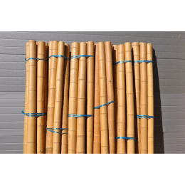 Bambusová tyč vysoké kvality. Bambusová tyč je sušená na slunci a má přírodní žlutou barvu. | Délka tyče 2 metry. Průměr tyče cca 8-9 cm. Průměr tyče je měřen u silnějšího konce. Tyč nemá žádné poškození od mačety při sklizni ani poškození od přepravy. Tyče skladujeme v suché zastřešené hale. Cena je uvedena za jednu celou bambusovou tyč délky 2 metry.