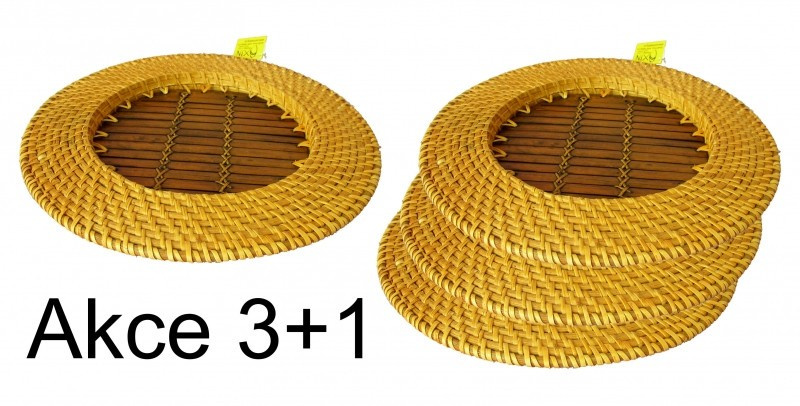 AKCE 3+1 - zaplatíte 3 kusy a dostanete 4 kusy stejných ratanových táců. Tácek vyrobený ručně z přírodního ratanu v kombinaci s přírodním bambusem. | Tác má velice praktické použití, můžete ho použít jako jídelní podtácek pod talíř, tác k servírování ovoce nebo i jako podklad pro suchou vazbu dle Vaší fantazie. Průměr tácu je 32,5 cm Výrobek má velice kvalitní zpracování.