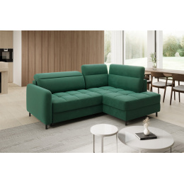 The Barea corner sofa is an elegant and functional piece of furniture measuring 208x160x100 cm, equipped with adjustable headrests and metal black legs with a height of 10 cm. Its solid construction made from high-quality materials ensures durability, and the carefully contoured seat and backrest guarantee comfort and proper support for the back. The modern design of the Barea corner sofa makes it a perfect fit for both minimalist and more sophisticated interior arrangements. Available in various fabric and color options, it is both aesthetic and functional, ideal for everyday relaxation and entertaining guests.