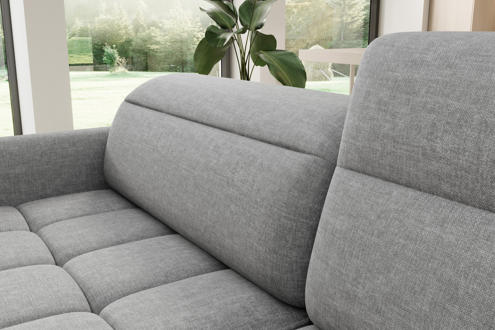 The Barea corner sofa is an elegant and functional piece of furniture measuring 208x160x100 cm, equipped with adjustable headrests and metal black legs with a height of 10 cm. Its solid construction made from high-quality materials ensures durability, and the carefully contoured seat and backrest guarantee comfort and proper support for the back. The modern design of the Barea corner sofa makes it a perfect fit for both minimalist and more sophisticated interior arrangements. Available in various fabric and color options, it is both aesthetic and functional, ideal for everyday relaxation and entertaining guests.