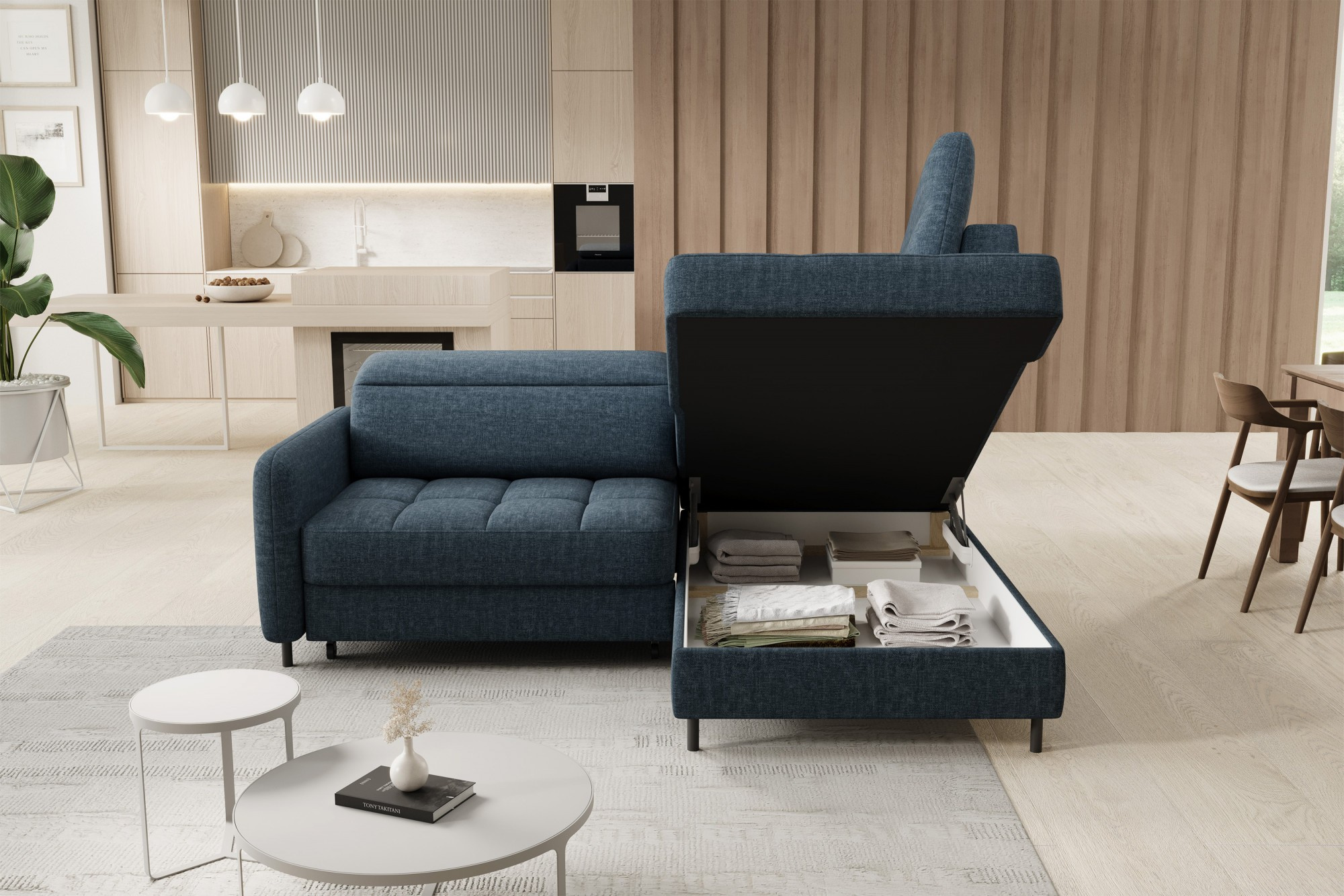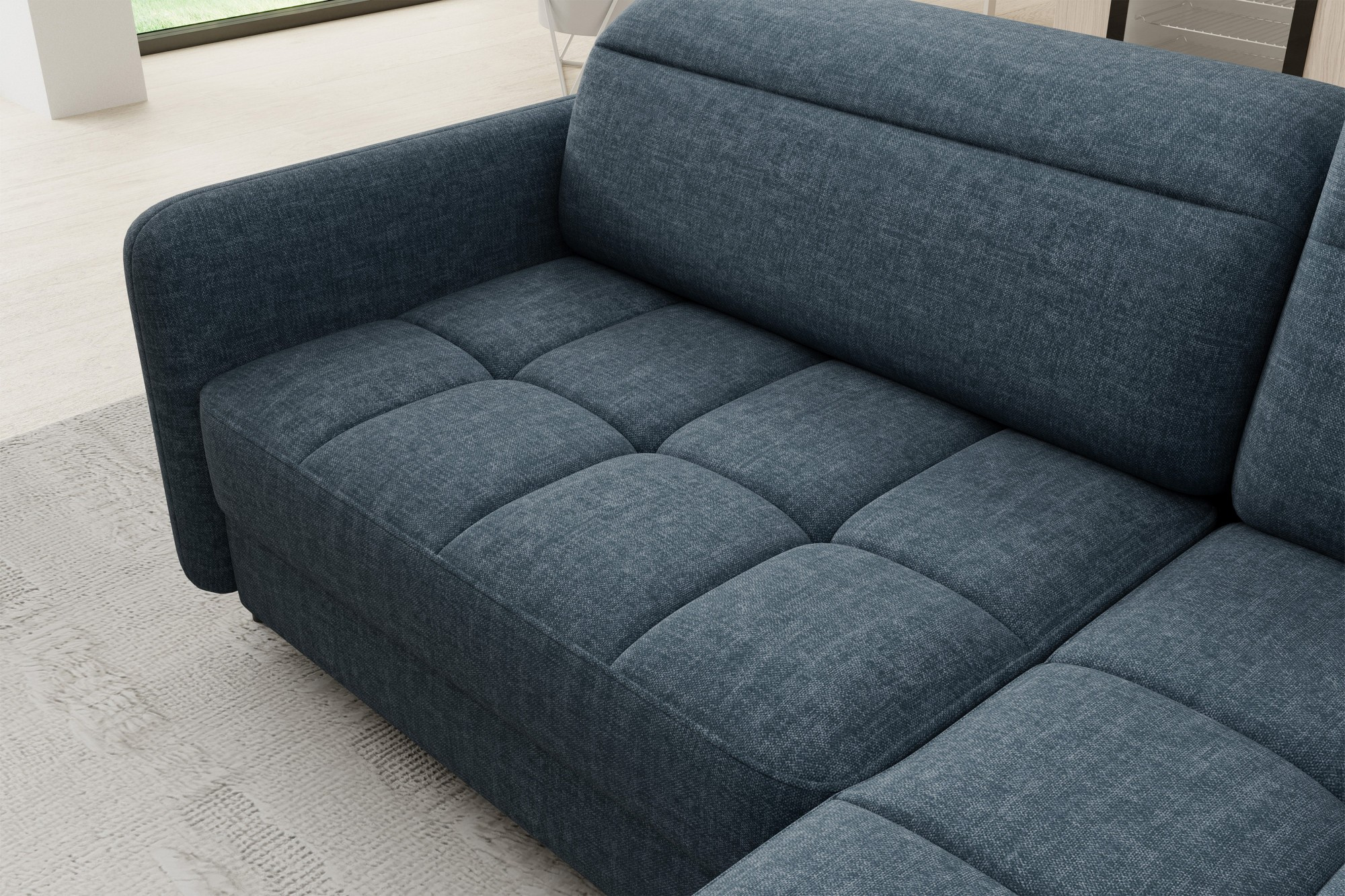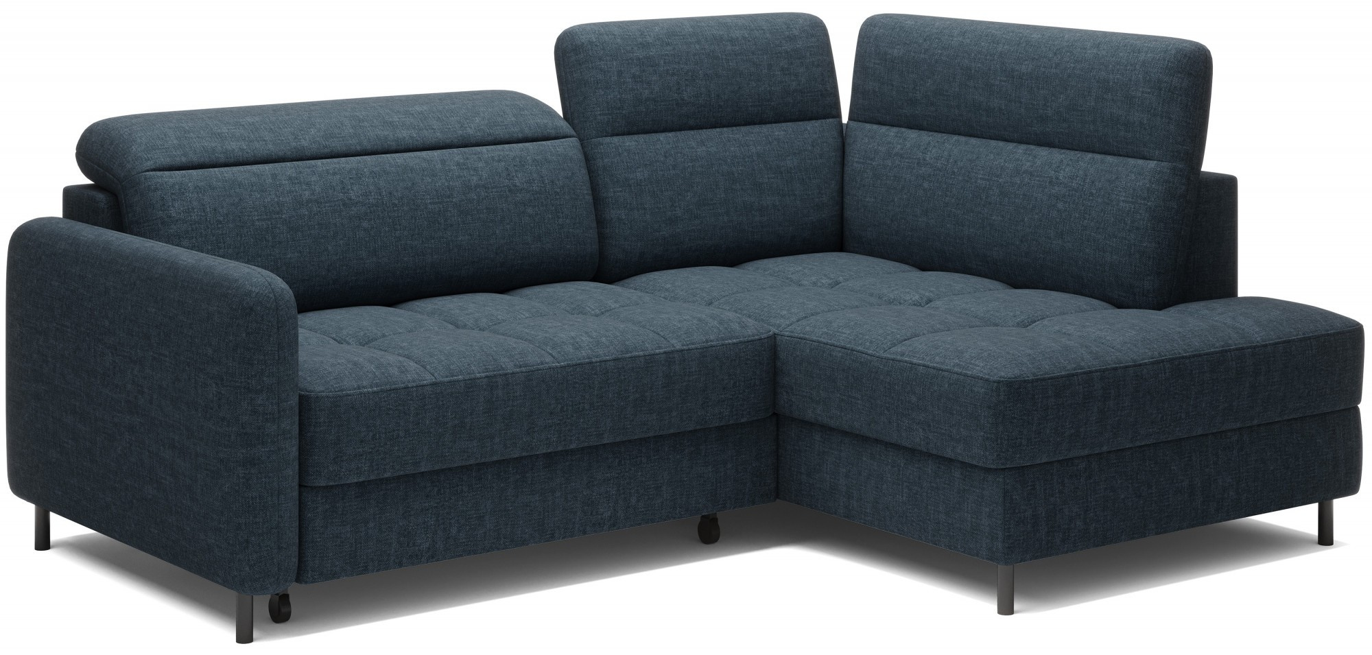 The Barea corner sofa is an elegant and functional piece of furniture measuring 208x160x100 cm, equipped with adjustable headrests and metal black legs with a height of 10 cm. Its solid construction made from high-quality materials ensures durability, and the carefully contoured seat and backrest guarantee comfort and proper support for the back. The modern design of the Barea corner sofa makes it a perfect fit for both minimalist and more sophisticated interior arrangements. Available in various fabric and color options, it is both aesthetic and functional, ideal for everyday relaxation and entertaining guests.