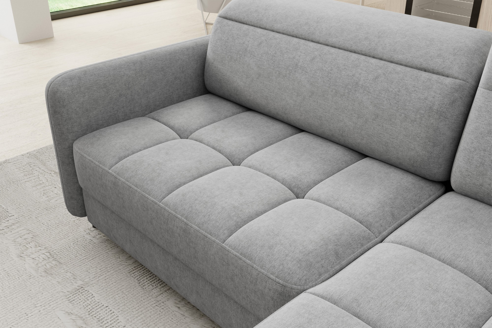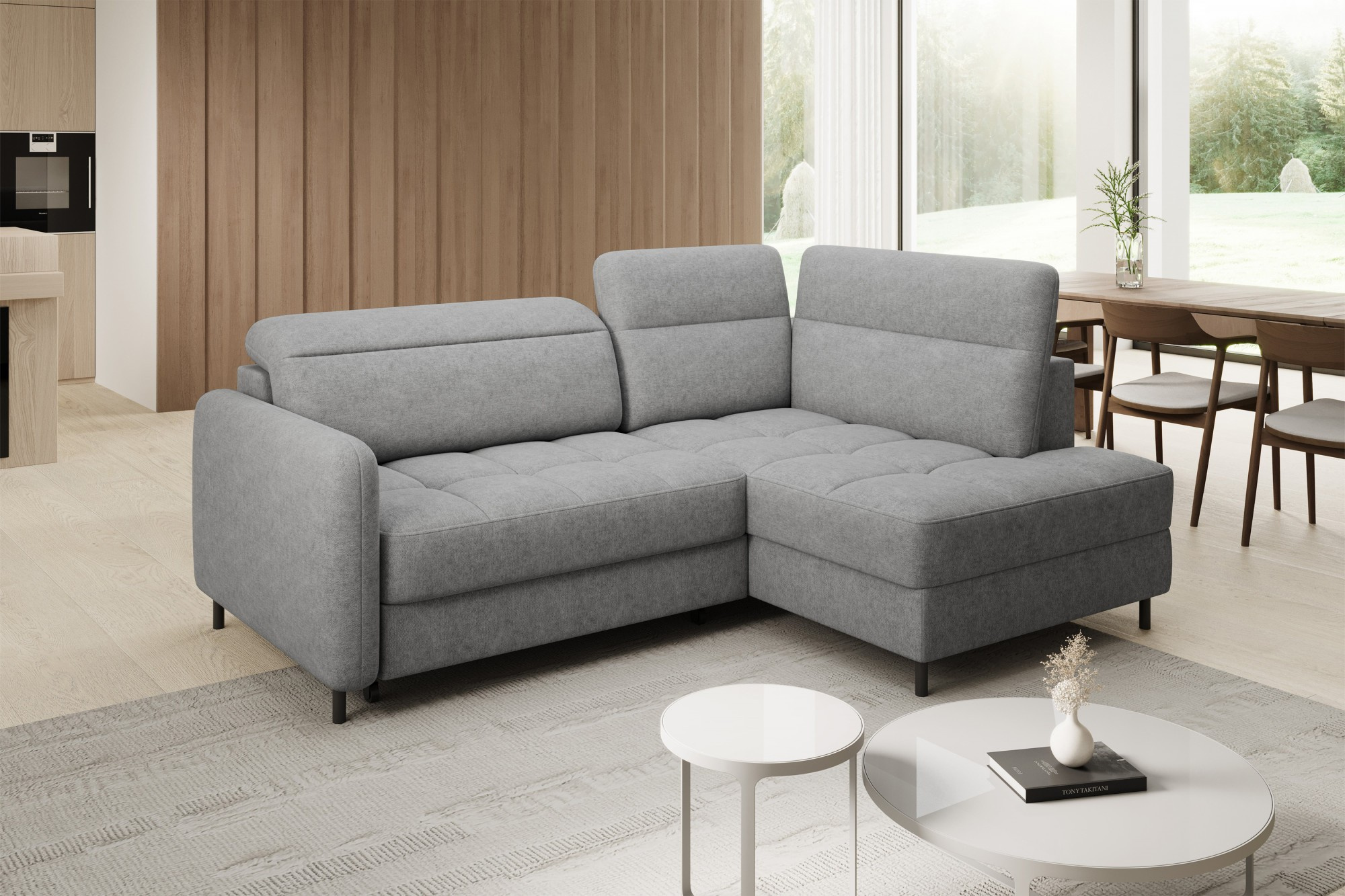 The Barea corner sofa is an elegant and functional piece of furniture measuring 208x160x100 cm, equipped with adjustable headrests and metal black legs with a height of 10 cm. Its solid construction made from high-quality materials ensures durability, and the carefully contoured seat and backrest guarantee comfort and proper support for the back. The modern design of the Barea corner sofa makes it a perfect fit for both minimalist and more sophisticated interior arrangements. Available in various fabric and color options, it is both aesthetic and functional, ideal for everyday relaxation and entertaining guests.