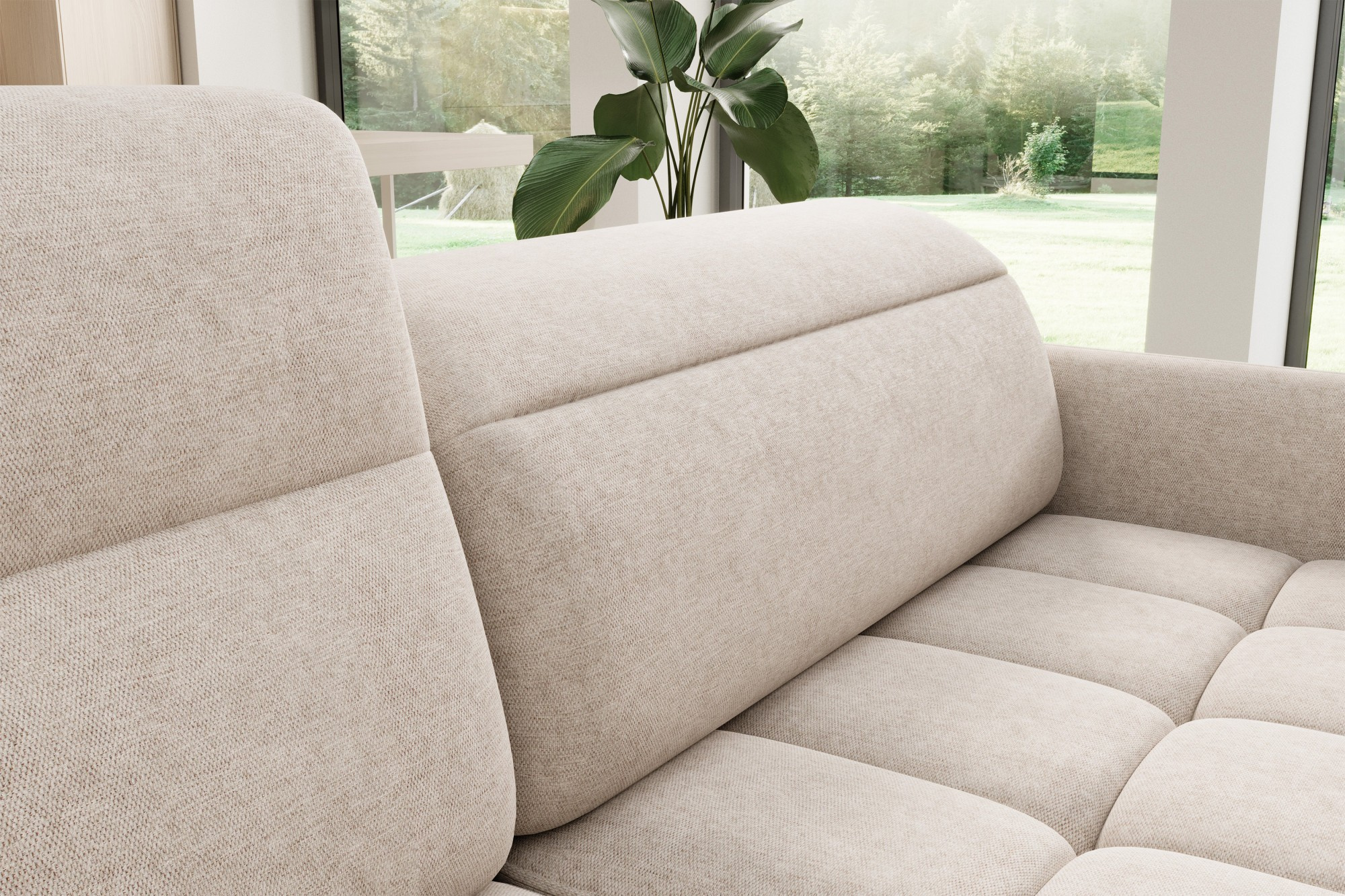 The Barea corner sofa is an elegant and functional piece of furniture measuring 208x160x100 cm, equipped with adjustable headrests and metal black legs with a height of 10 cm. Its solid construction made from high-quality materials ensures durability, and the carefully contoured seat and backrest guarantee comfort and proper support for the back. The modern design of the Barea corner sofa makes it a perfect fit for both minimalist and more sophisticated interior arrangements. Available in various fabric and color options, it is both aesthetic and functional, ideal for everyday relaxation and entertaining guests.