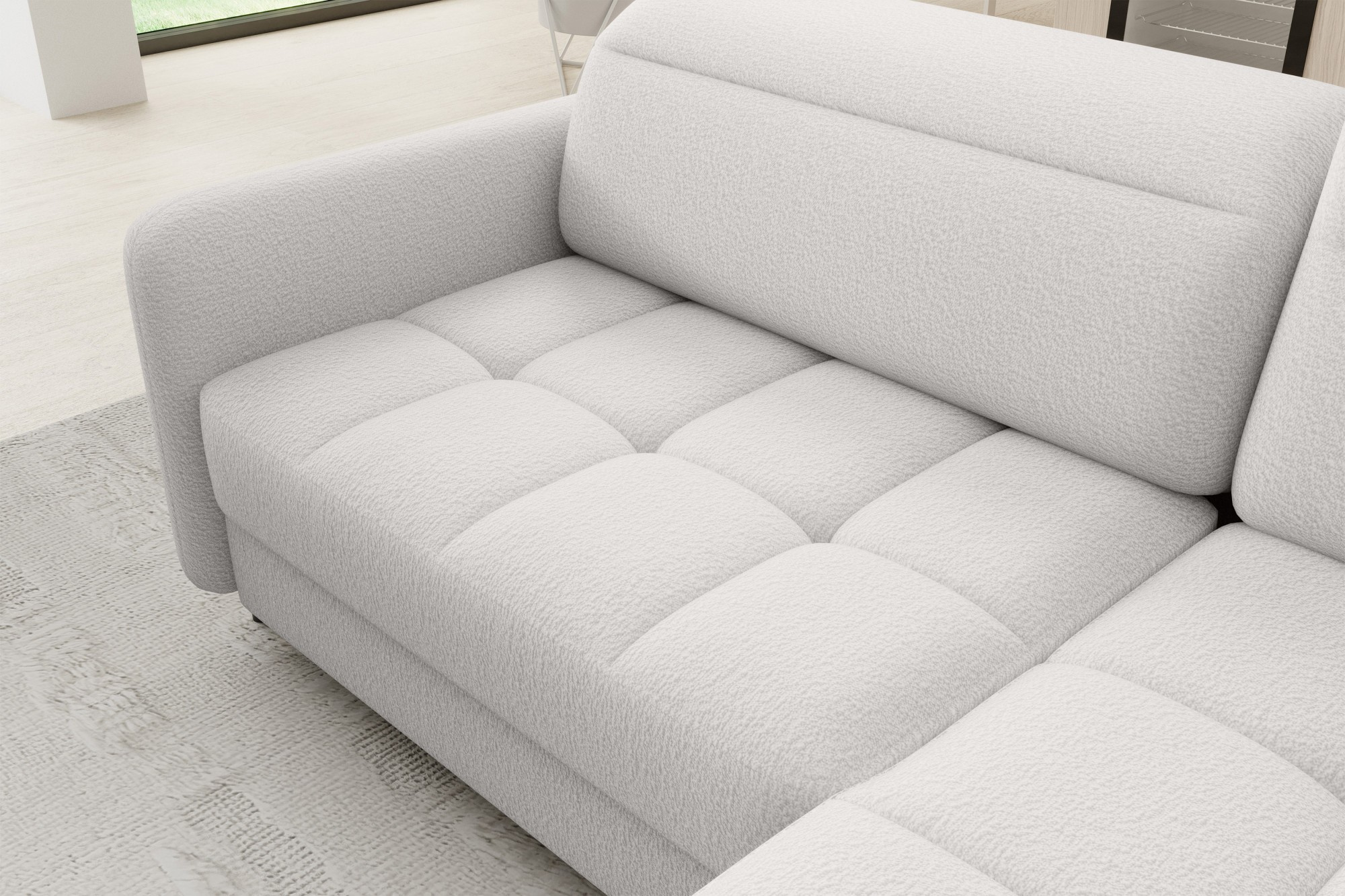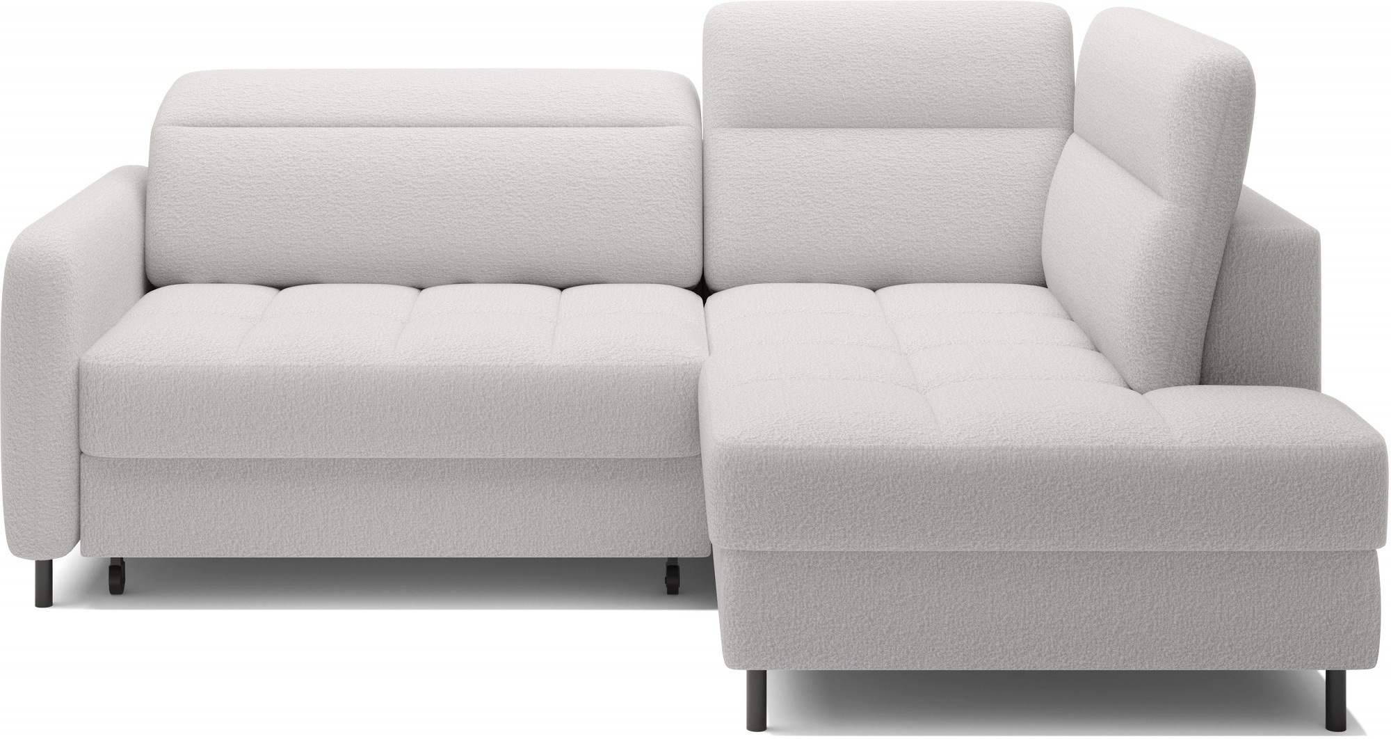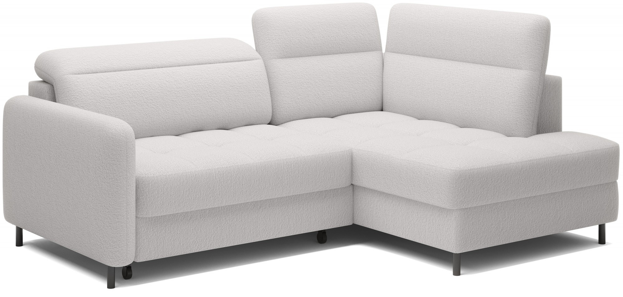 The Barea corner sofa is an elegant and functional piece of furniture measuring 208x160x100 cm, equipped with adjustable headrests and metal black legs with a height of 10 cm. Its solid construction made from high-quality materials ensures durability, and the carefully contoured seat and backrest guarantee comfort and proper support for the back. The modern design of the Barea corner sofa makes it a perfect fit for both minimalist and more sophisticated interior arrangements. Available in various fabric and color options, it is both aesthetic and functional, ideal for everyday relaxation and entertaining guests.