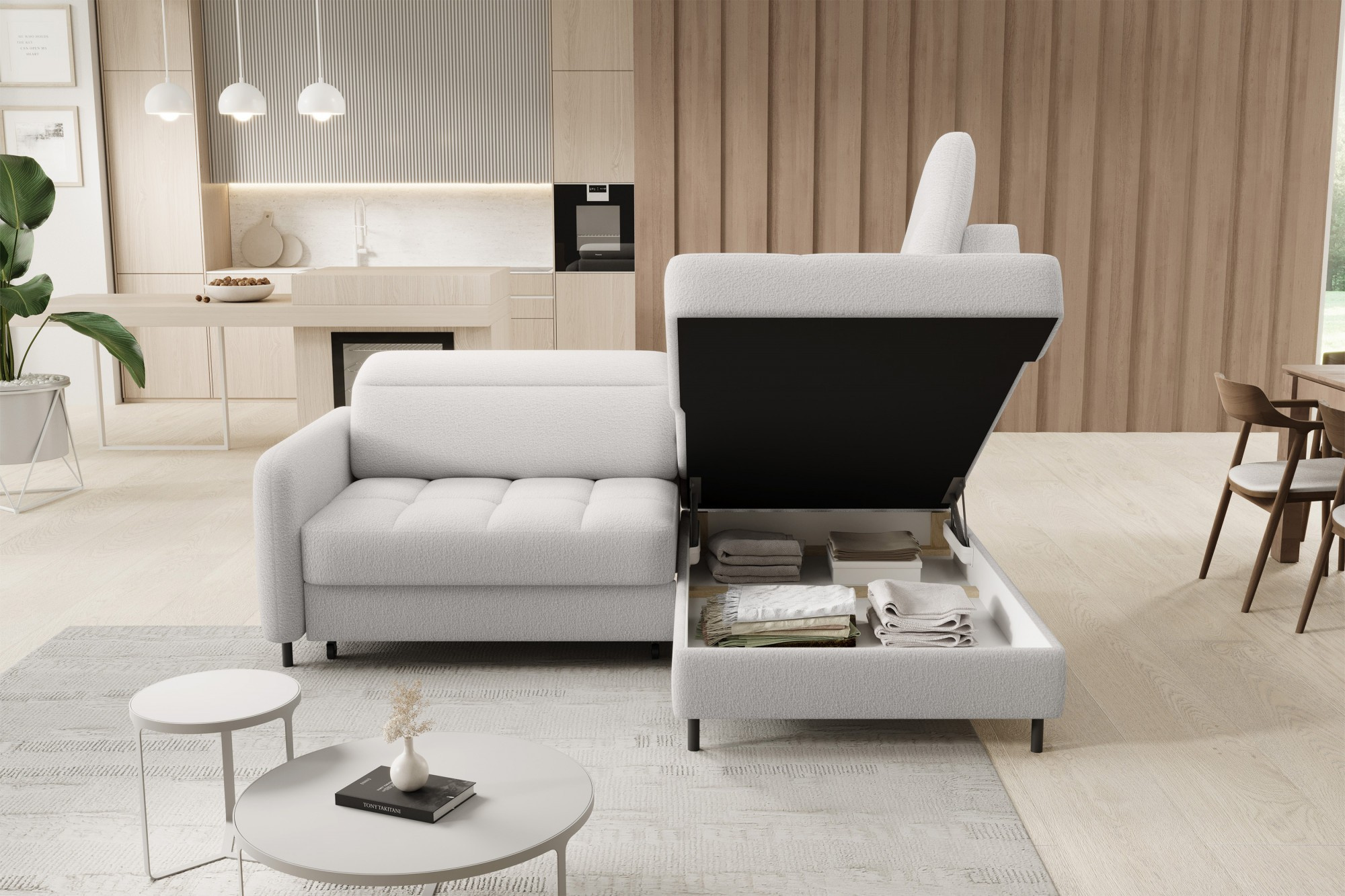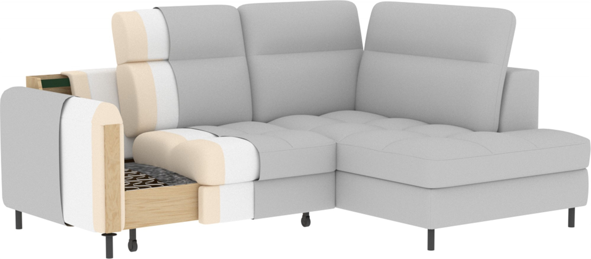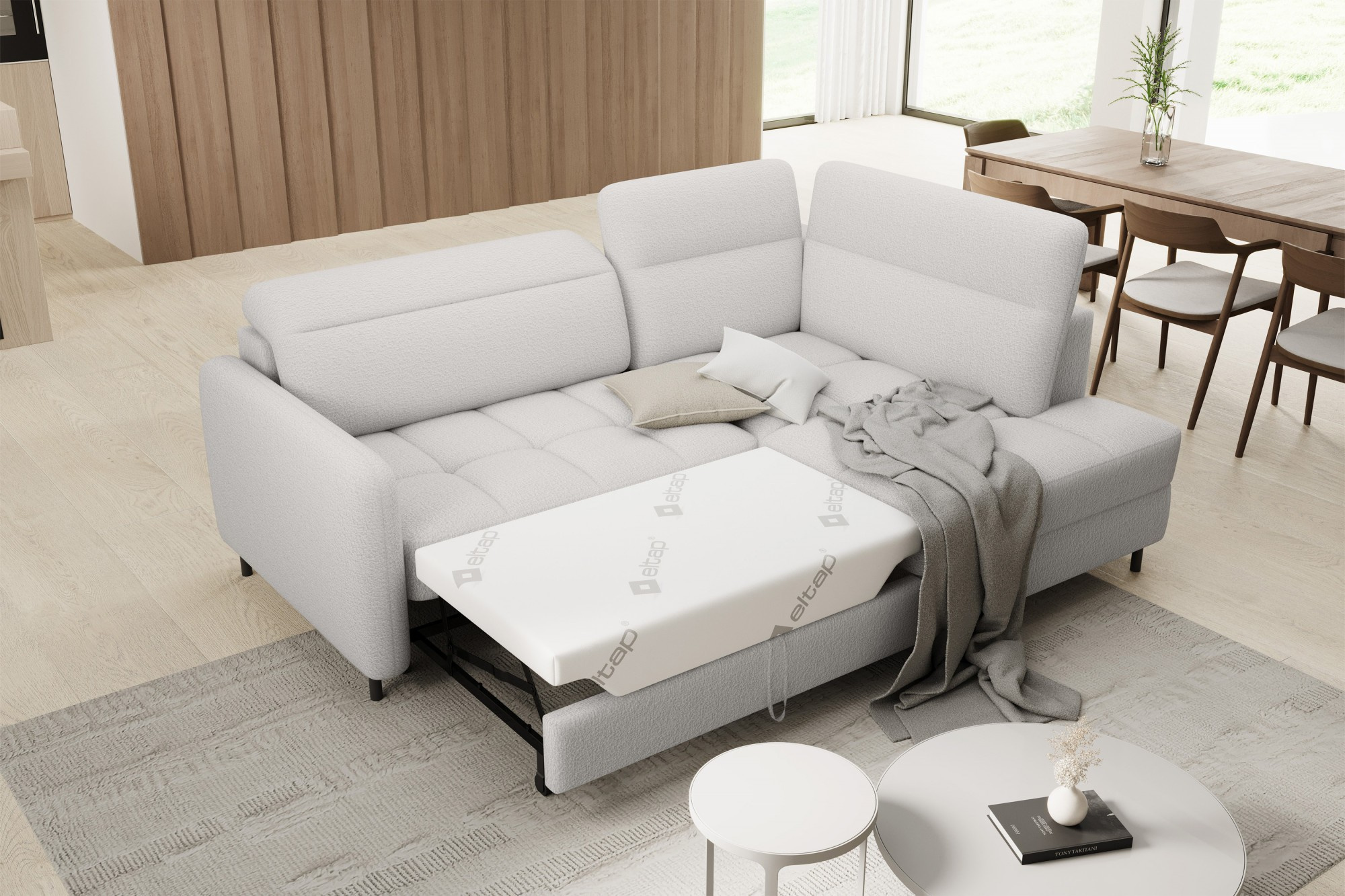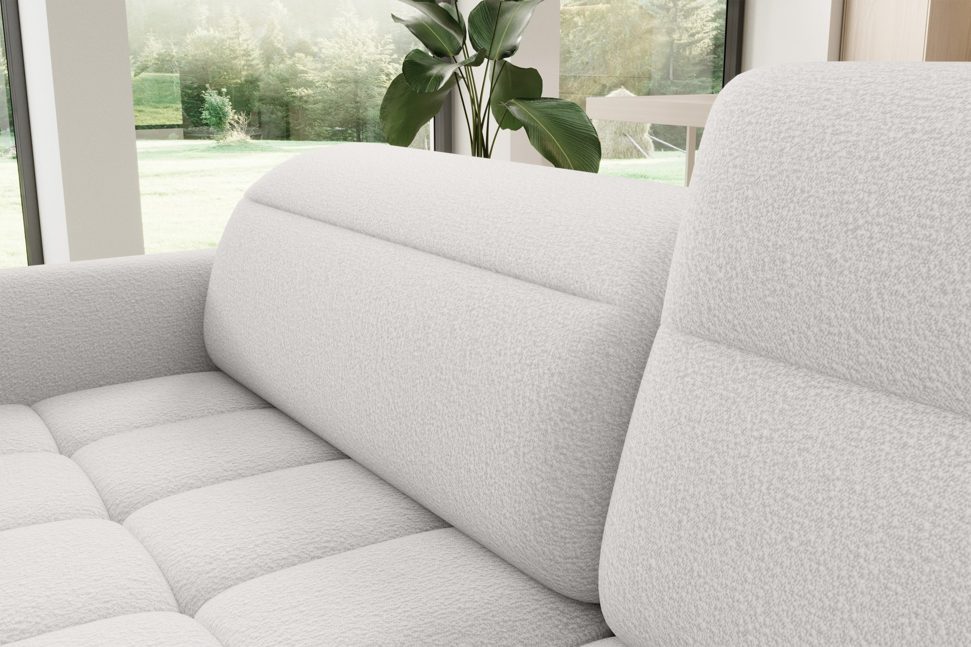 The Barea corner sofa is an elegant and functional piece of furniture measuring 208x160x100 cm, equipped with adjustable headrests and metal black legs with a height of 10 cm. Its solid construction made from high-quality materials ensures durability, and the carefully contoured seat and backrest guarantee comfort and proper support for the back. The modern design of the Barea corner sofa makes it a perfect fit for both minimalist and more sophisticated interior arrangements. Available in various fabric and color options, it is both aesthetic and functional, ideal for everyday relaxation and entertaining guests.