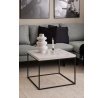 Az első dolog, amit valószínűleg észrevesz ezen a dohányzóasztalon, az a kőhatású furnérból készült markáns vastag lap. Robusztus és fehér márványmintával díszített, ami az asztalnak kifejező megjelenést kölcsönöz. Ha tehát olyan akcentust keres, amely kiemelkedik a térben, akkor ez az. A dohányzóasztal főbb jellemzői: Modern négyzet alakú dohányzóasztal Erős lap fehér márvány megjelenéssel a merész megjelenésért Karcsú acél alap porfestett felülettel Christina Aagaard tervező által tervezve FSC tanúsítvánnyal rendelkezik A lap vastagsága 3 cm Filc alátétekkel felszerelve Súly 7 kg Max. terhelés 20 kg Karton méretei: 70x65x7 cm