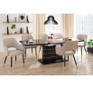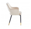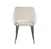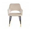 Méretek: - a szék teljes magassága: 85 cm - a karfa magassága: 65 cm - az ülés magassága: 48 cm - a karfa magassága: 19 cm - az ülés és a háttámla felső része közötti magasság: 40 cm - az ülés szélessége: 48 cm - a szék szélessége: 59 cm - az ülés mélysége: 48 cm - az ülés vastagsága: 6 cm Anyag: - kárpitozás: bársony - lábak: fekete arany véggel Szín: - ülés + háttámla: bézs - szerkezet: fekete fém arany véggel