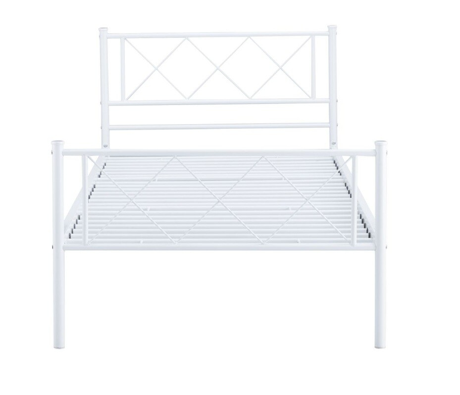 Méretek: - Teljes hossz: 206,50 cm - teljes szélesség: 96 cm - fejtámla magassága: 81 cm fejtámla magassága - fekvőfelület: 90x200 cm Anyag: - Anyag: porfestett fém Szín: - Fehér