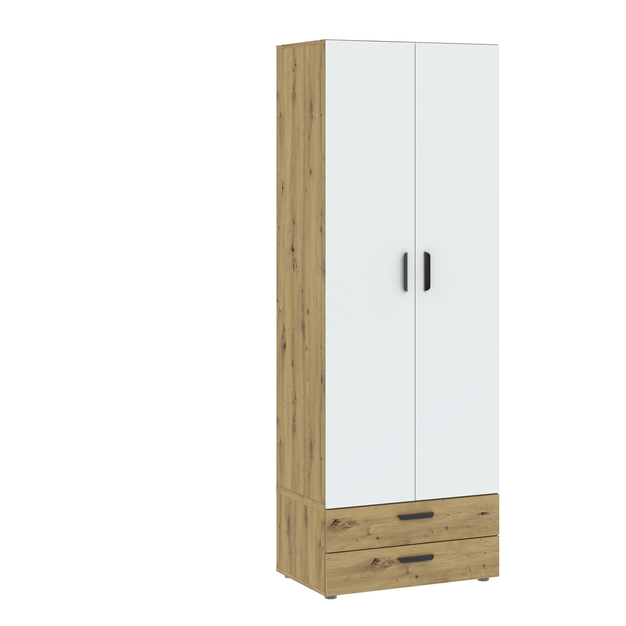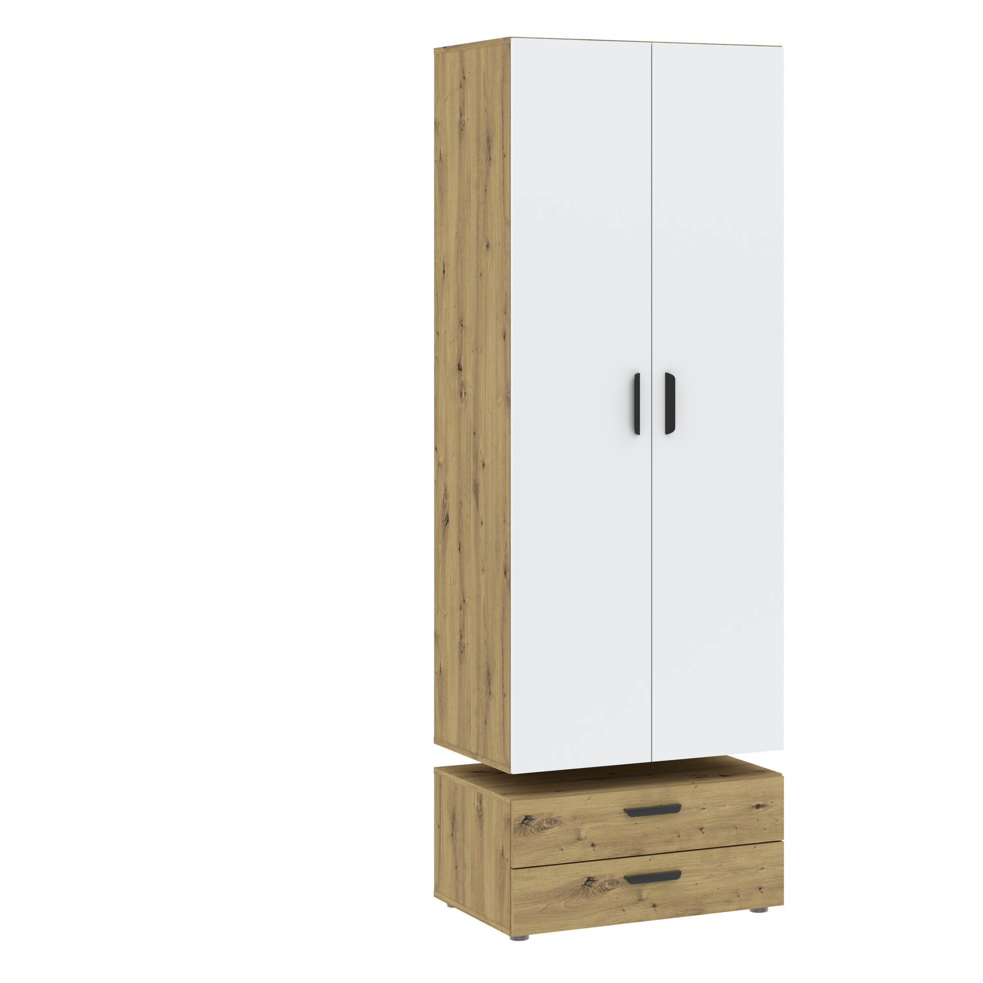 BASIC 2D2S ruhásszekrény talapzattal, Artisan Tölgy/Fehér