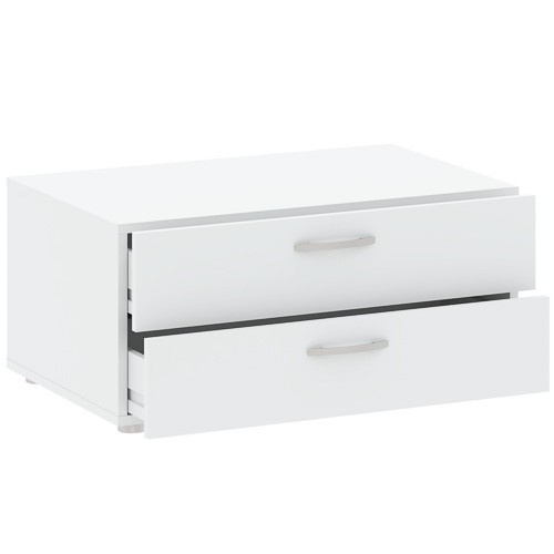 A két tágas fióknak köszönhetően a komód elegendő tárolóhelyet kínál ruhái, dokumentumai vagy más személyes tárgyai számára. A fiókok úgy vannak kialakítva, hogy könnyen nyithatók és zárhatók legyenek, ami kényelmes használatot biztosít minden nap.