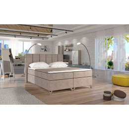 Basilio is an indispensable element of any bedroom, which, due to its comfort and functionality, affects not only the comfortable sleep, but also the visual setting of the bedroom, any square footage. Basilio is a boxspring bed, which is available in three sizes: 140/ 160/ 180 x 200 cm. The simple structure of the piece of furniture has been broken with a high headrest, filled with T21 foam, as well as a spacious bonell mattress 20 centimeters high. It has two layers of T25 foam, which are located at the top and bottom of the mattress, as well as a topper made of T21 foam with a thickness of 4 centimeters. Features of the Basilio model include a headrest with stitching, a capacious bedding storage compartment divided into 3 parts, as well as a wide range of colors available. The most original decorative element of our furniture is the possibility of equipping it with LED lighting. If you care about maximum comfort, proper positioning of the body during sleep and a unique decoration of the room that brightens up the existing interior - Basilio will certainly be an ideal choice.