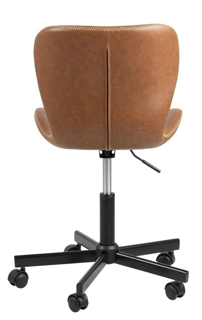 A Batilda kényelmes, puha irodai szék elsősorban ergonomikusan formázott szék, amely nemcsak a hátat támasztja meg, hanem a csípőt és a lapockákat is támogatja. A Batilda szék puha kárpitozó habbal töltött ülőpárnával van felszerelve, és környezetbarát PU retro bőr hatású brandy 691B bőrrel van befejezve. A szövet sima szerkezete klasszikus megjelenést kölcsönöz a széknek. A szék magassága állítható. A szék alapja egy fém kar, öt műanyag kerékkel. A szék is forgatható. Max. magasság 87 cm, Max, ülésmagasság: 51,5 cm Min.magasság: 80 cm, Min ülésmagasság: 44,5 cm Kartonok száma: 1 Kartonok méretei: 55x58x43 cm Kartonok súlya: 9,3 kg