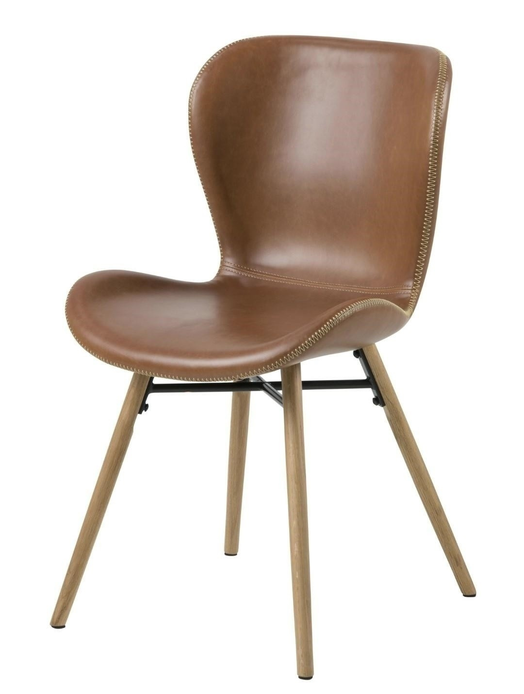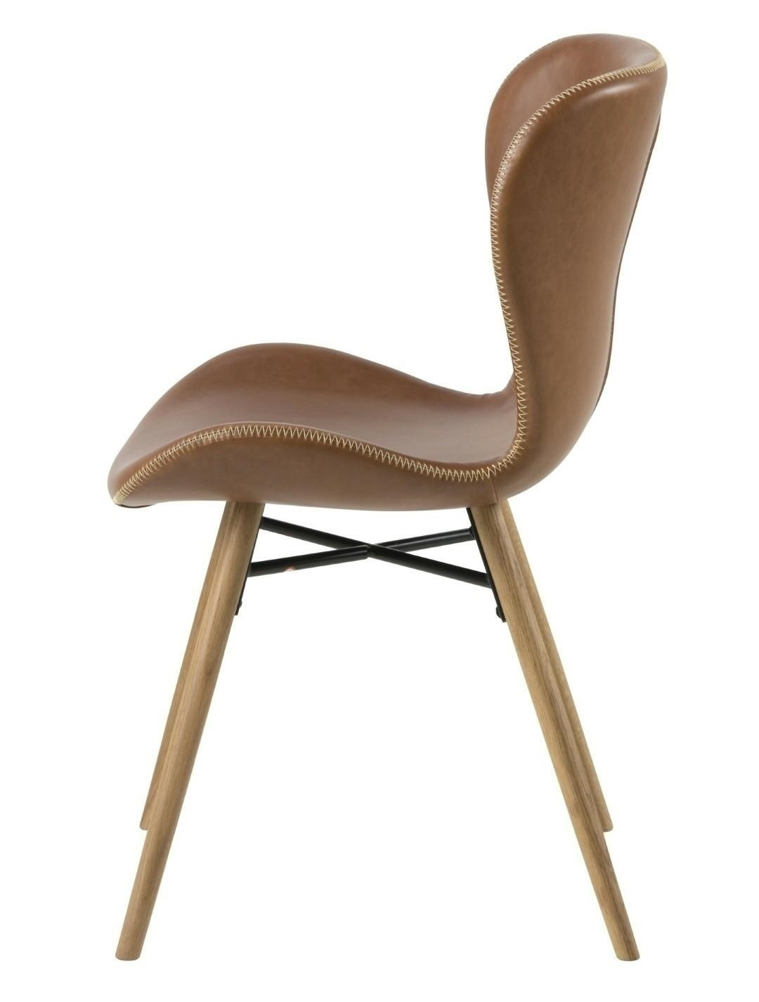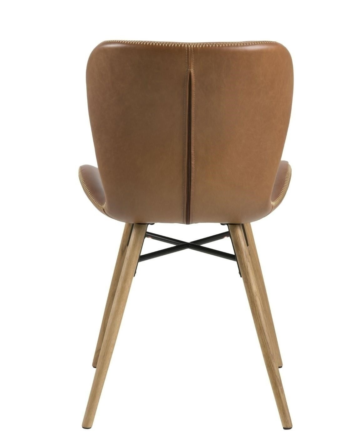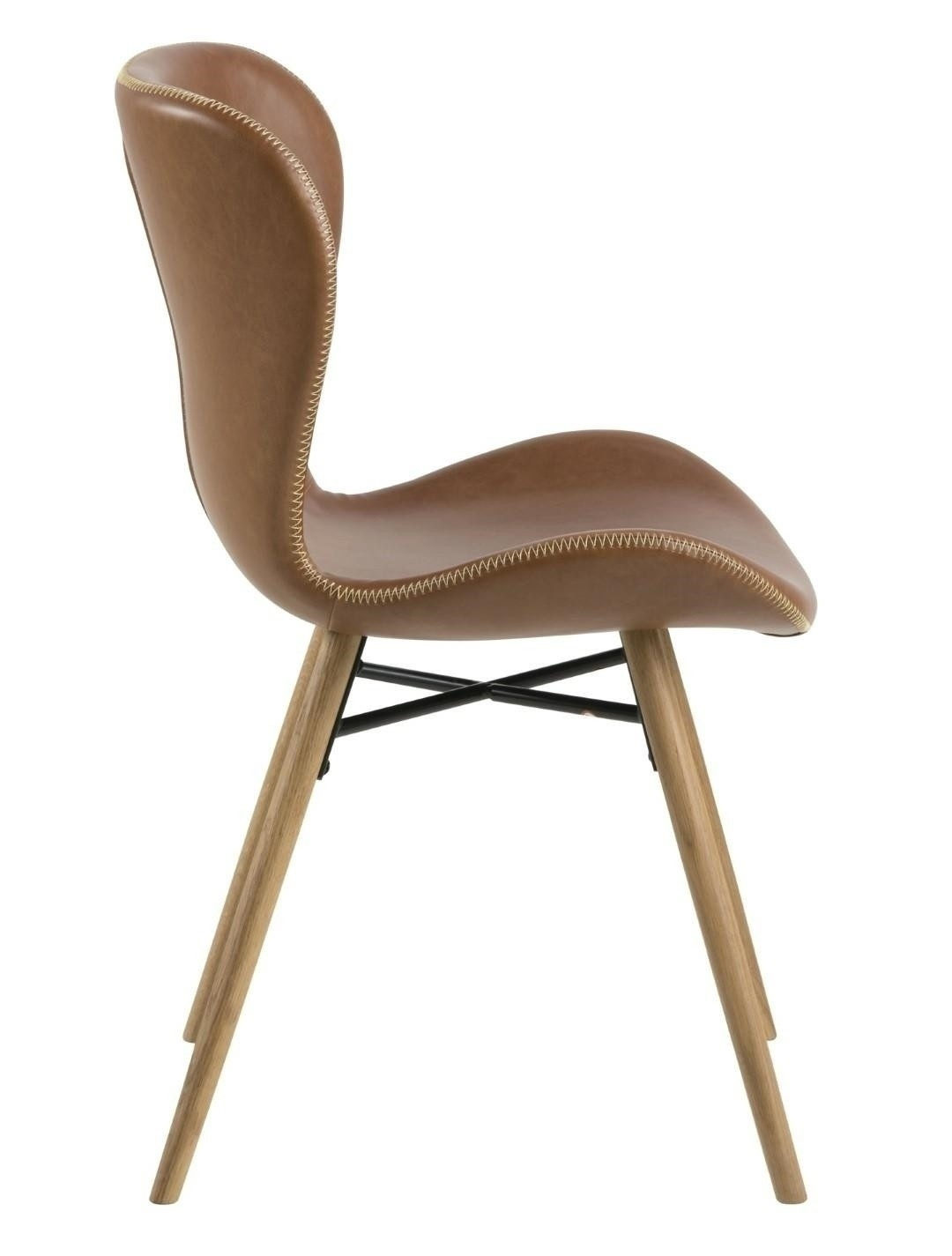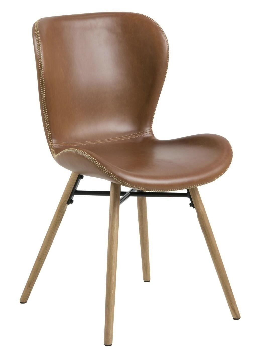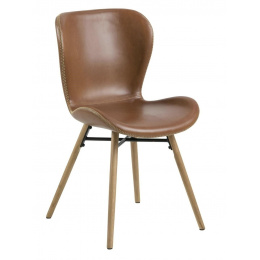A Batilda Retro Brandy szék nagyszerű megoldás a nappaliba vagy az étkezőbe. Masszív alap olajozott tölgyfából, fémkereszttel megerősítve, amely biztosítja a stabilitást használat közben. Az ökobőrből készült ülés világosbarna színben, durvább varrással nagyon hatásosnak tűnik. A szék meglehetősen könnyű, mivel 6,15 kg-ot nyom. Maximális terhelhetősége 120 kg. Maximális darabszám. a dobozban: 2 Ülésmagasság: 46,5 cm Ülésszélesség: 47 cm Ülésmélység: 40 cm