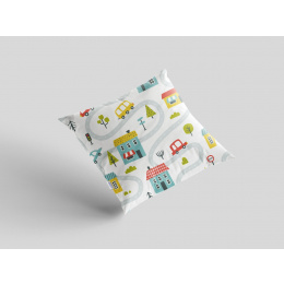 Bavlněný povlak na polštář 40x40 cm s dětským motivem městečko