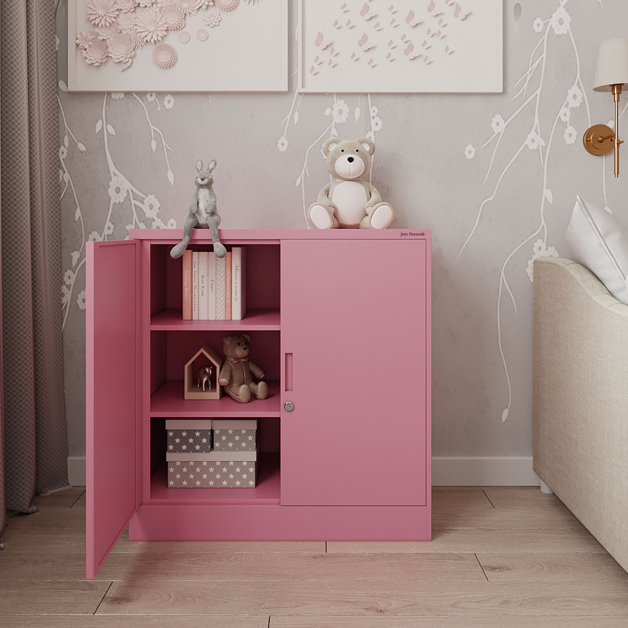 A BEATA szekrény a minőség, tartósság és esztétika szinonimája. Úgy van tervezve, hogy megfeleljen a modern munkakörnyezet legigényesebb követelményeinek is. Finom rózsaszín árnyalata (RAL 3015 púderrózsaszín) nyugalmat és harmóniát kölcsönöz irodájának, miközben támogatja kreativitását és produktivitását.