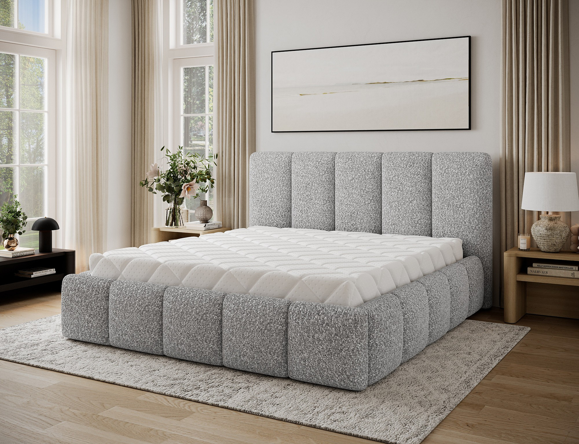 Edvige is an exceptionally comfortable, tasteful, and original glamour-style bed that impresses with its unique form. The sleeping surface dimensions – available in 140/160/180 × 200 cm – provide ample space for comfortable rest and can be chosen according to individual preferences, room size, and bedroom layout. Edvige stands out thanks to its high headboard and bed sides made with additional foam for the tufting, while the aesthetic effect is enhanced by elongated, spacious quilting. A wide range of color options makes it easy to match the bed with other elements of the bedroom décor. In this design, modernity and a contemporary finish go hand in hand with elegance, making Edvige a perfect addition to any bedroom and a piece that is certainly worth having.