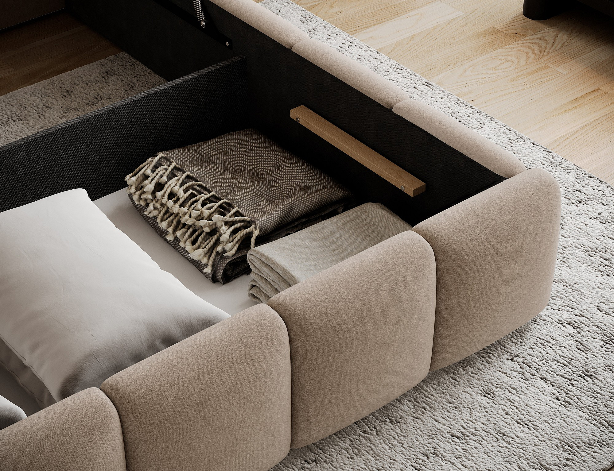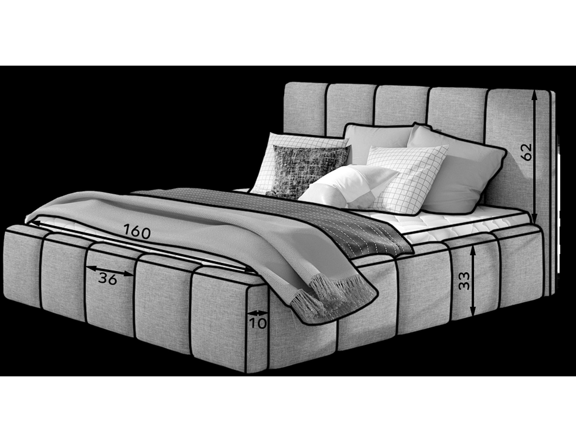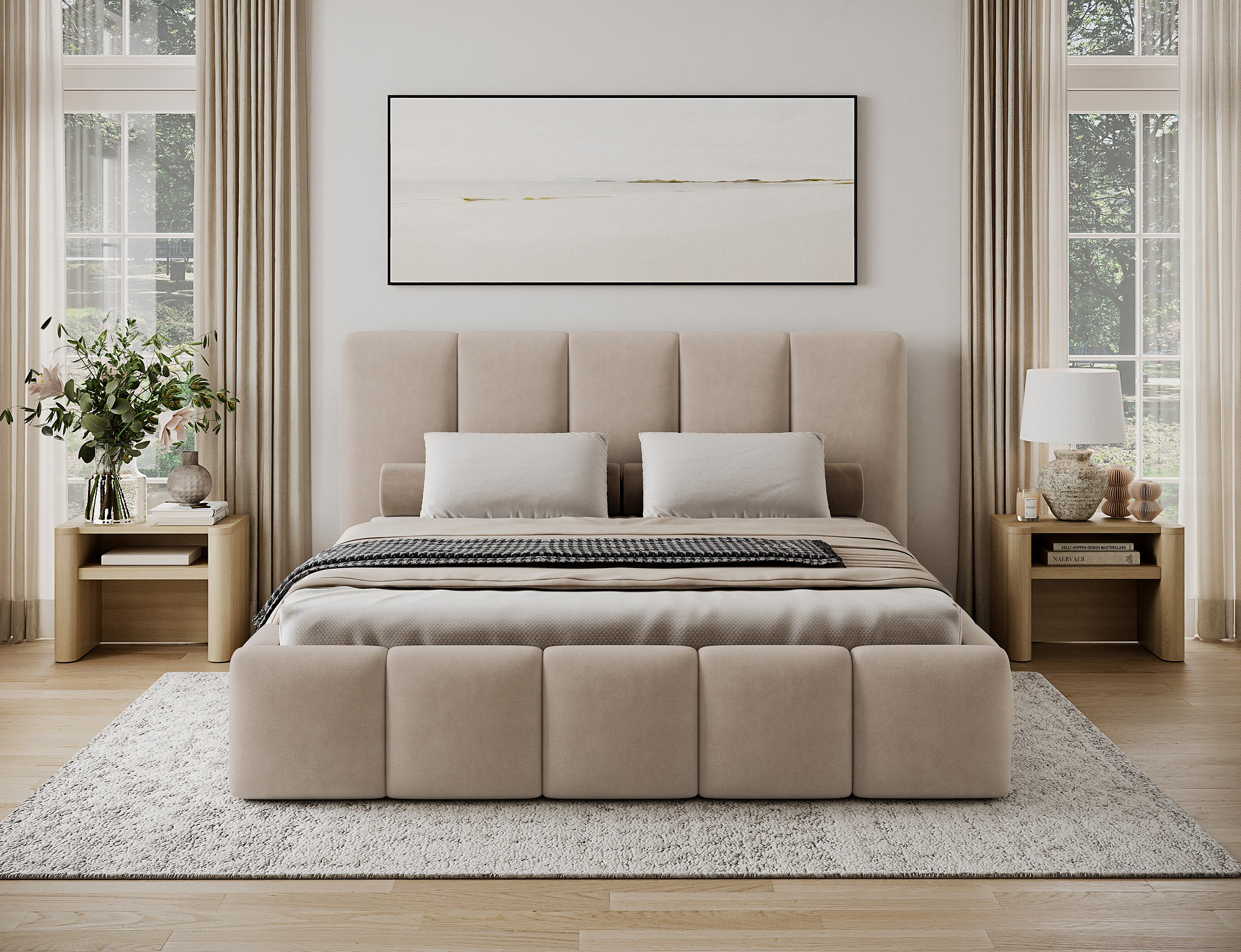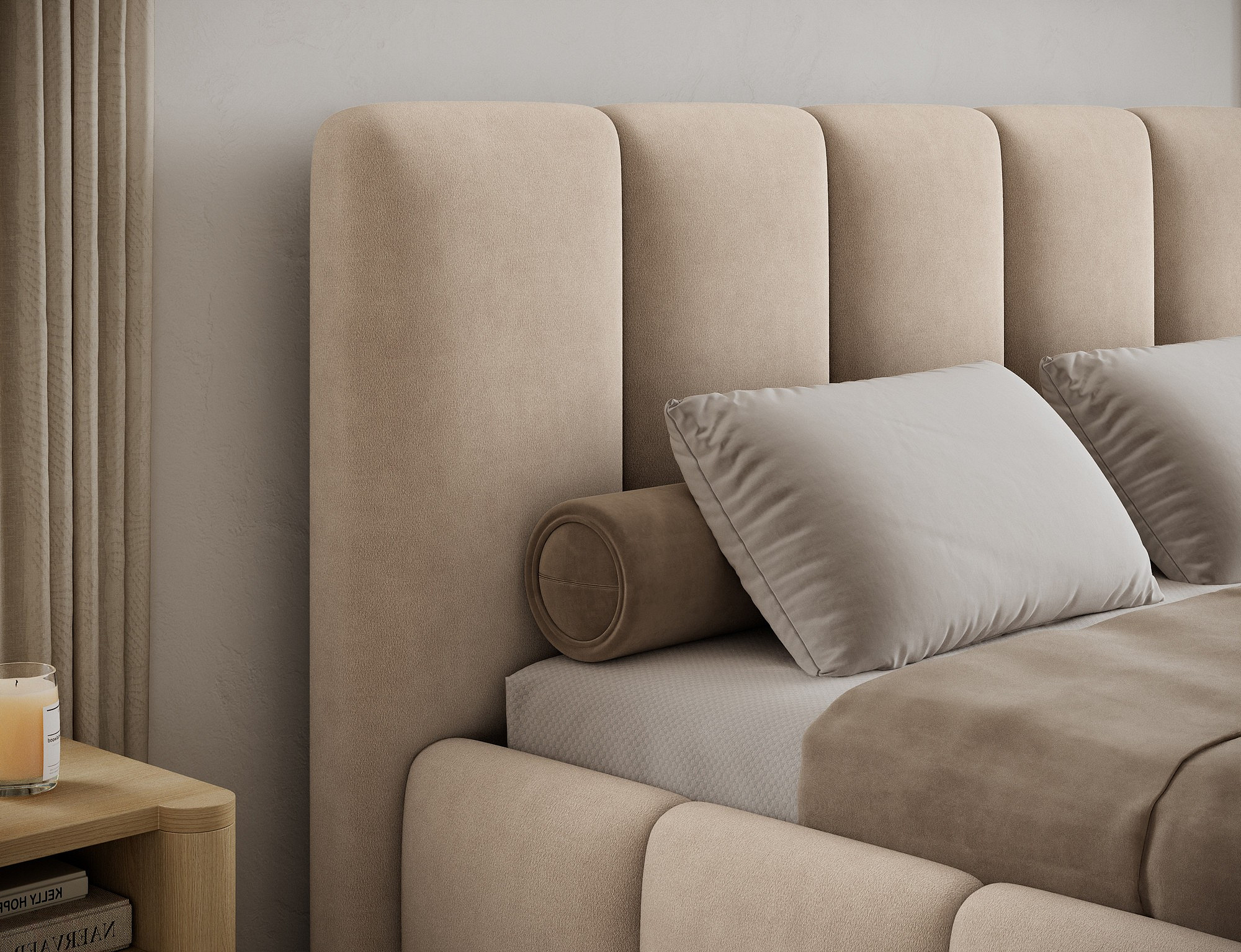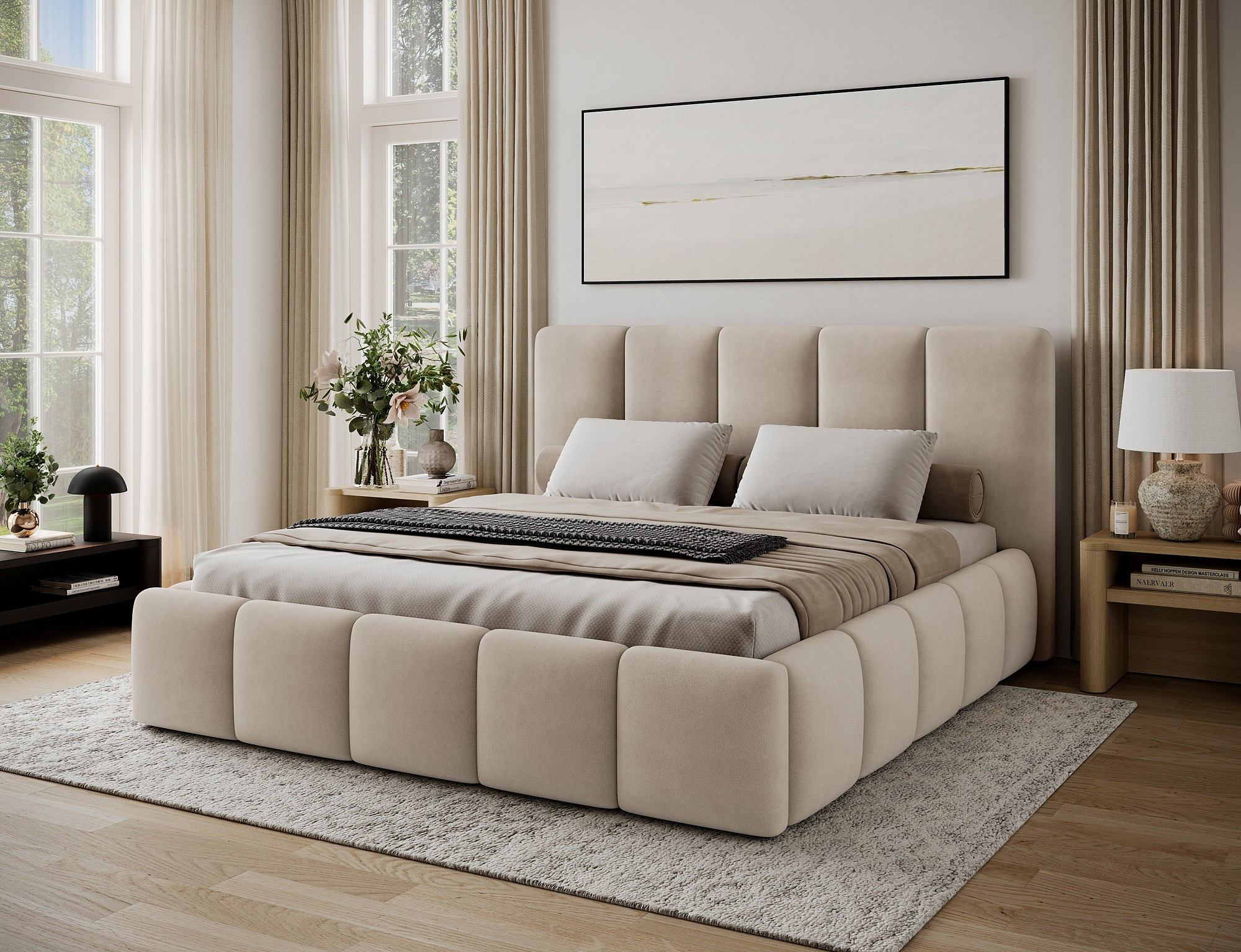 Edvige is an exceptionally comfortable, tasteful, and original glamour-style bed that impresses with its unique form. The sleeping surface dimensions – available in 140/160/180 × 200 cm – provide ample space for comfortable rest and can be chosen according to individual preferences, room size, and bedroom layout. Edvige stands out thanks to its high headboard and bed sides made with additional foam for the tufting, while the aesthetic effect is enhanced by elongated, spacious quilting. A wide range of color options makes it easy to match the bed with other elements of the bedroom décor. In this design, modernity and a contemporary finish go hand in hand with elegance, making Edvige a perfect addition to any bedroom and a piece that is certainly worth having.
