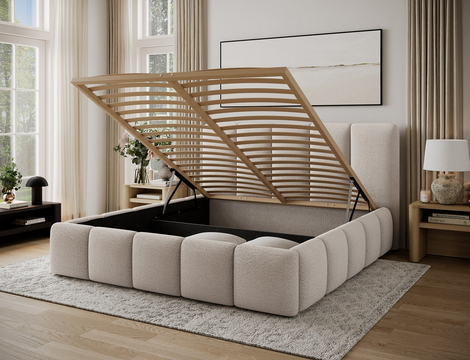 Edvige is an exceptionally comfortable, tasteful, and original glamour-style bed that impresses with its unique form. The sleeping surface dimensions – available in 140/160/180 × 200 cm – provide ample space for comfortable rest and can be chosen according to individual preferences, room size, and bedroom layout. Edvige stands out thanks to its high headboard and bed sides made with additional foam for the tufting, while the aesthetic effect is enhanced by elongated, spacious quilting. A wide range of color options makes it easy to match the bed with other elements of the bedroom décor. In this design, modernity and a contemporary finish go hand in hand with elegance, making Edvige a perfect addition to any bedroom and a piece that is certainly worth having.