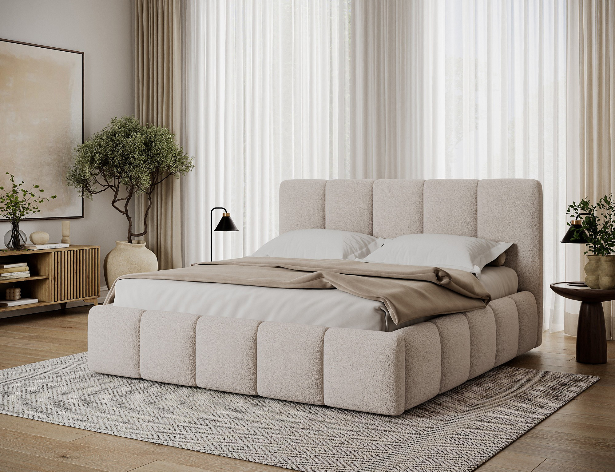 Edvige is an exceptionally comfortable, tasteful, and original glamour-style bed that impresses with its unique form. The sleeping surface dimensions – available in 140/160/180 × 200 cm – provide ample space for comfortable rest and can be chosen according to individual preferences, room size, and bedroom layout. Edvige stands out thanks to its high headboard and bed sides made with additional foam for the tufting, while the aesthetic effect is enhanced by elongated, spacious quilting. A wide range of color options makes it easy to match the bed with other elements of the bedroom décor. In this design, modernity and a contemporary finish go hand in hand with elegance, making Edvige a perfect addition to any bedroom and a piece that is certainly worth having.