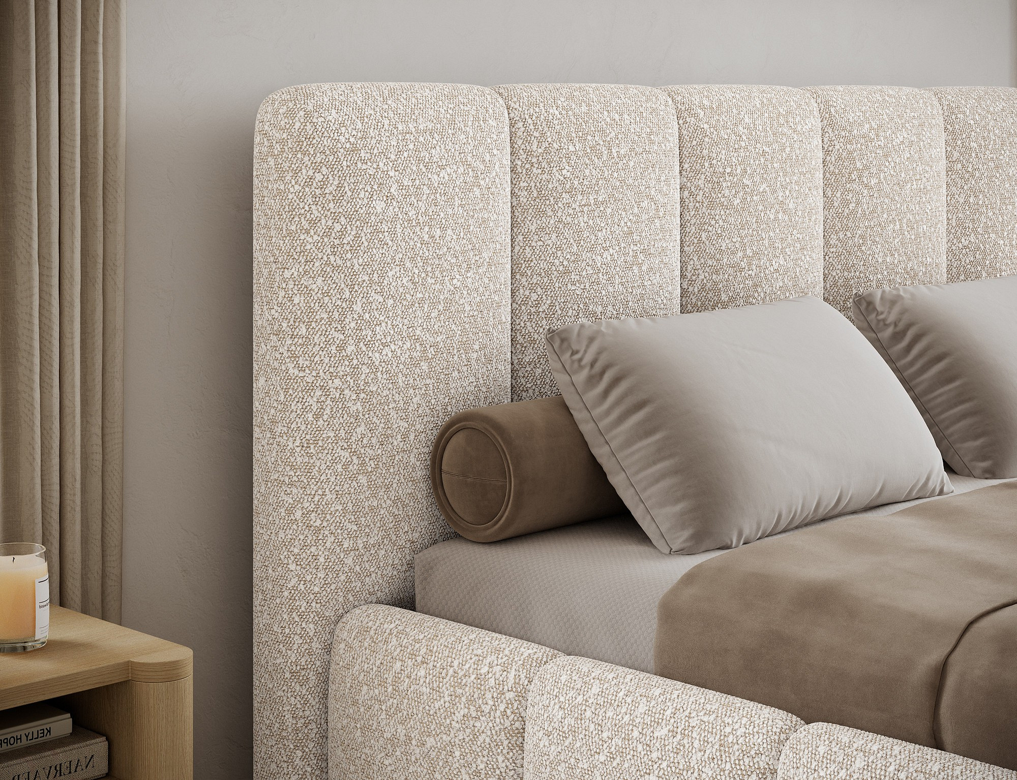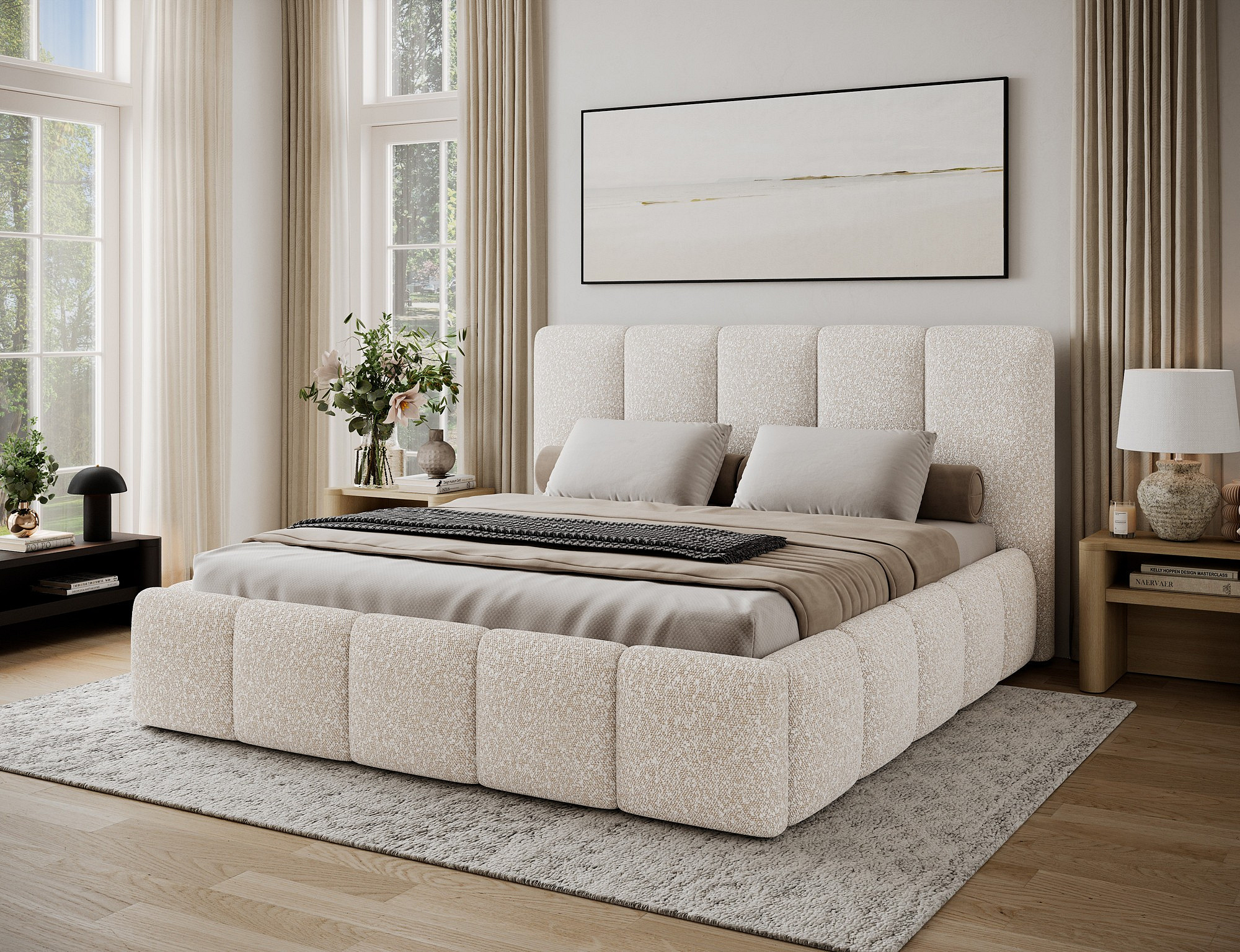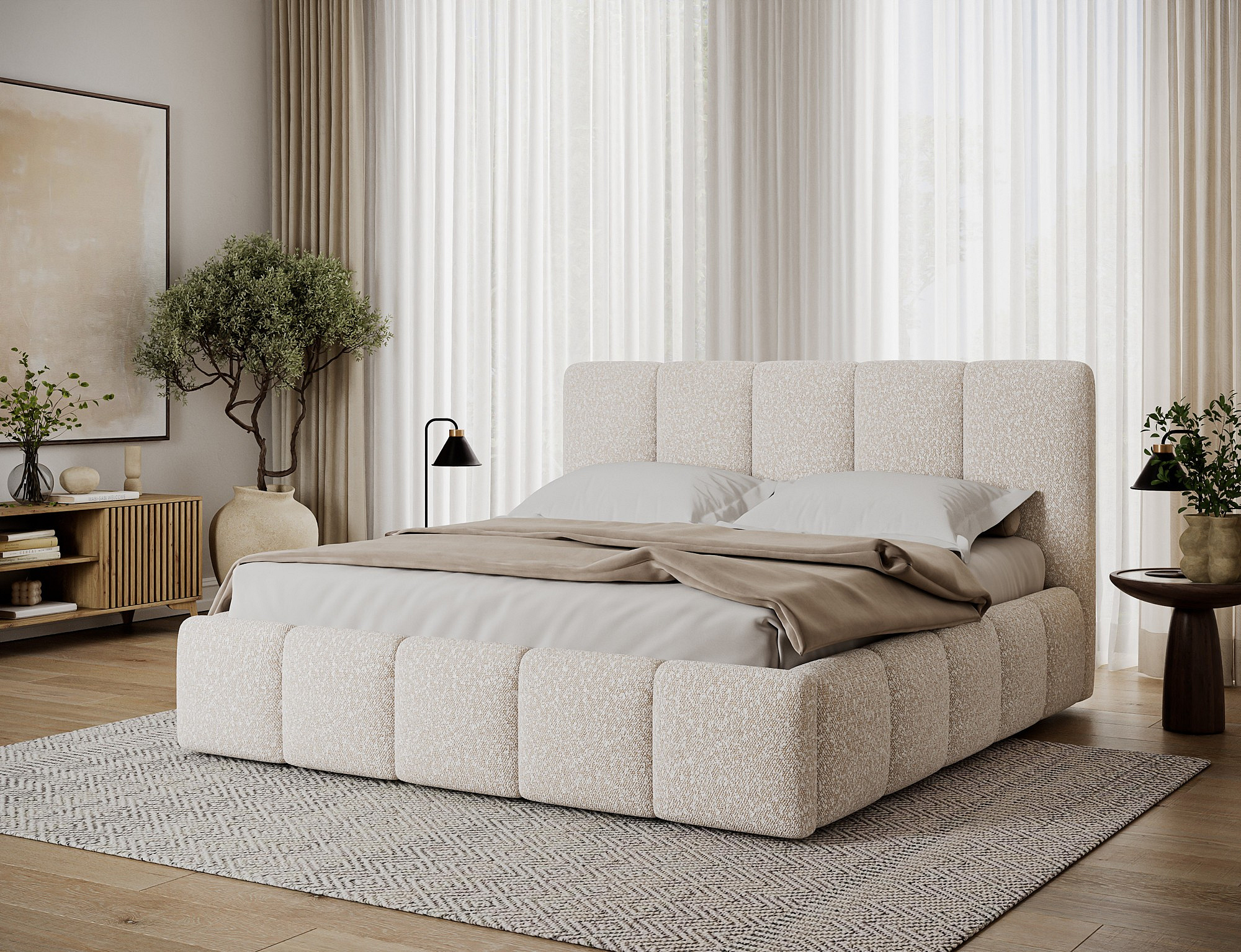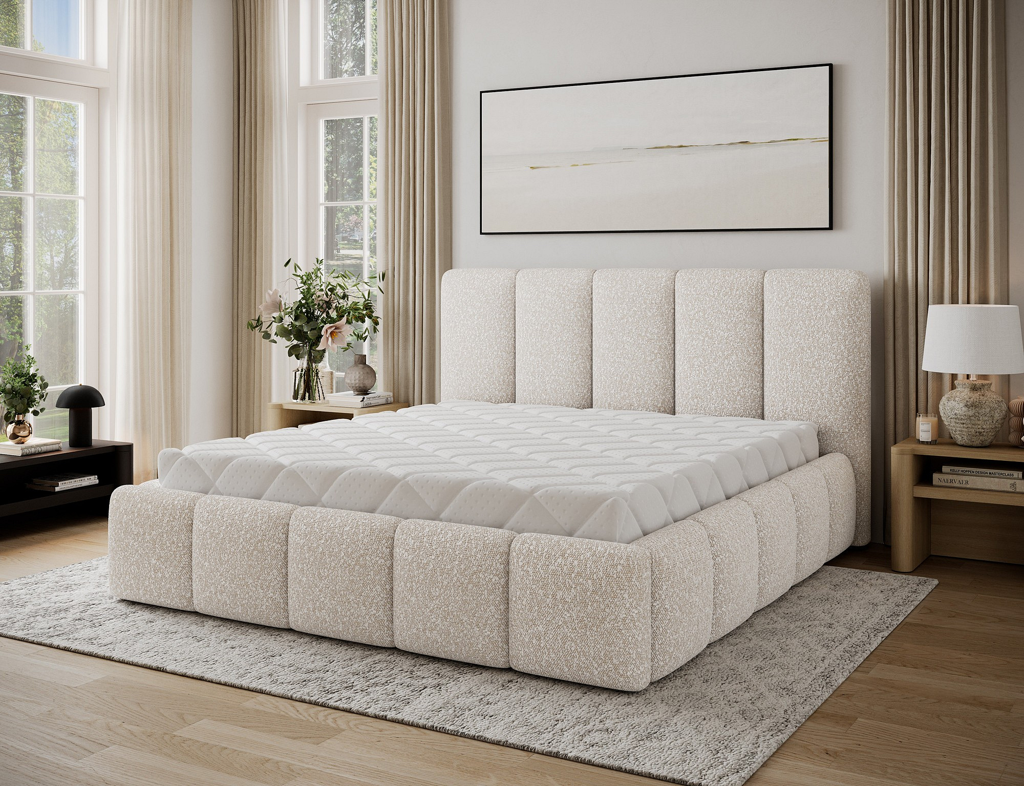 Edvige is an exceptionally comfortable, tasteful, and original glamour-style bed that impresses with its unique form. The sleeping surface dimensions – available in 140/160/180 × 200 cm – provide ample space for comfortable rest and can be chosen according to individual preferences, room size, and bedroom layout. Edvige stands out thanks to its high headboard and bed sides made with additional foam for the tufting, while the aesthetic effect is enhanced by elongated, spacious quilting. A wide range of color options makes it easy to match the bed with other elements of the bedroom décor. In this design, modernity and a contemporary finish go hand in hand with elegance, making Edvige a perfect addition to any bedroom and a piece that is certainly worth having.