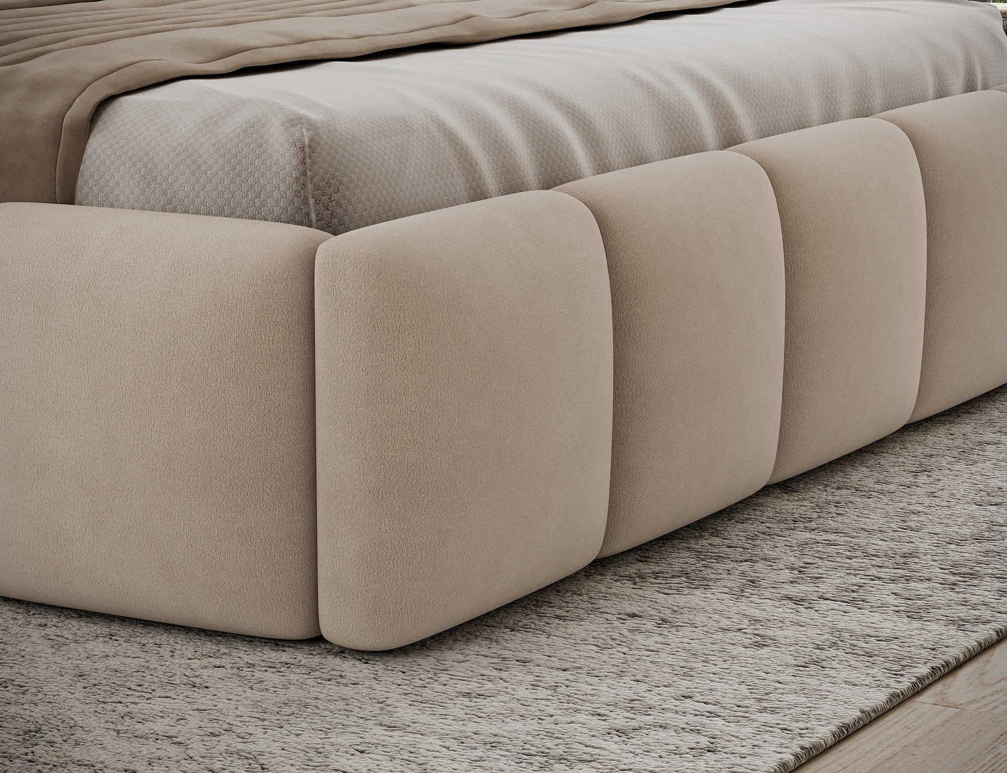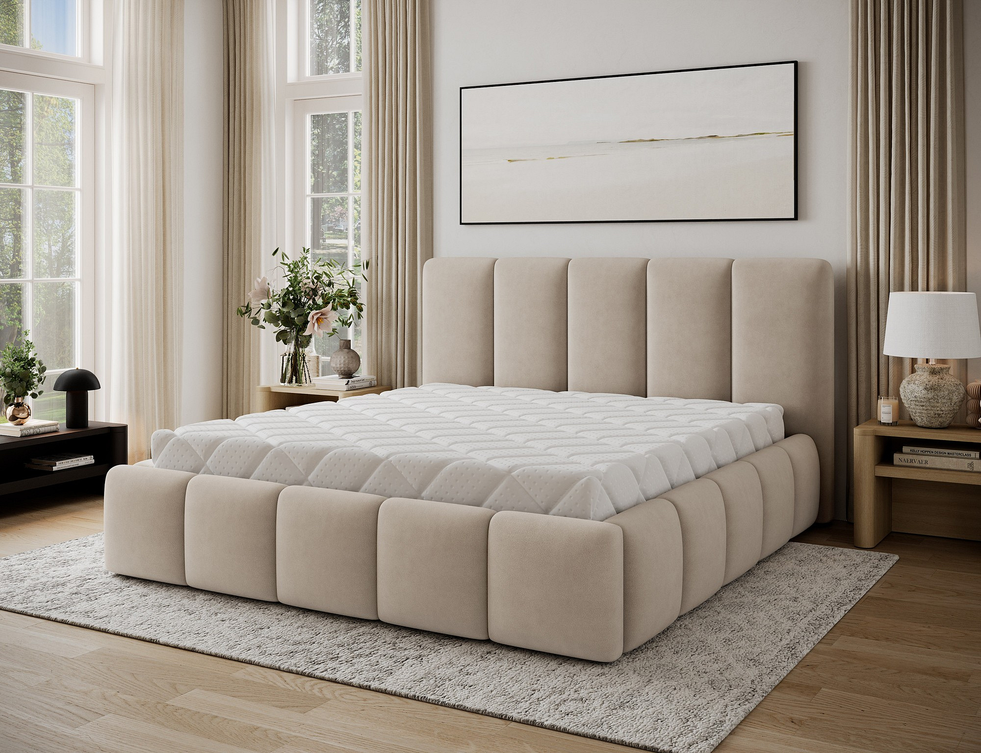 Edvige is an exceptionally comfortable, tasteful, and original glamour-style bed that impresses with its unique form. The sleeping surface dimensions – available in 140/160/180 × 200 cm – provide ample space for comfortable rest and can be chosen according to individual preferences, room size, and bedroom layout. Edvige stands out thanks to its high headboard and bed sides made with additional foam for the tufting, while the aesthetic effect is enhanced by elongated, spacious quilting. A wide range of color options makes it easy to match the bed with other elements of the bedroom décor. In this design, modernity and a contemporary finish go hand in hand with elegance, making Edvige a perfect addition to any bedroom and a piece that is certainly worth having.