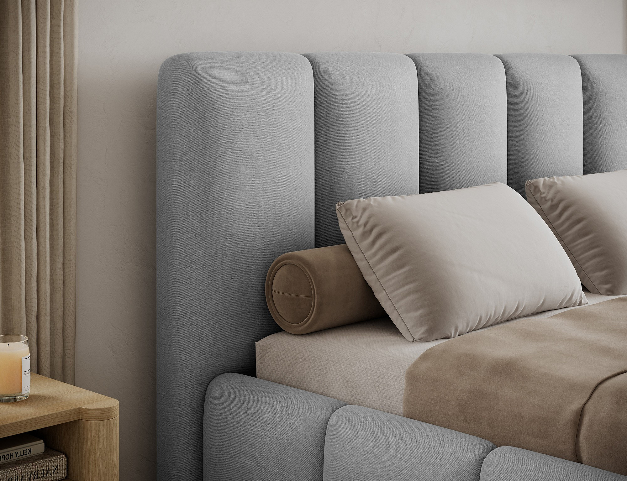 Edvige is an exceptionally comfortable, tasteful, and original glamour-style bed that impresses with its unique form. The sleeping surface dimensions – available in 140/160/180 × 200 cm – provide ample space for comfortable rest and can be chosen according to individual preferences, room size, and bedroom layout. Edvige stands out thanks to its high headboard and bed sides made with additional foam for the tufting, while the aesthetic effect is enhanced by elongated, spacious quilting. A wide range of color options makes it easy to match the bed with other elements of the bedroom décor. In this design, modernity and a contemporary finish go hand in hand with elegance, making Edvige a perfect addition to any bedroom and a piece that is certainly worth having.