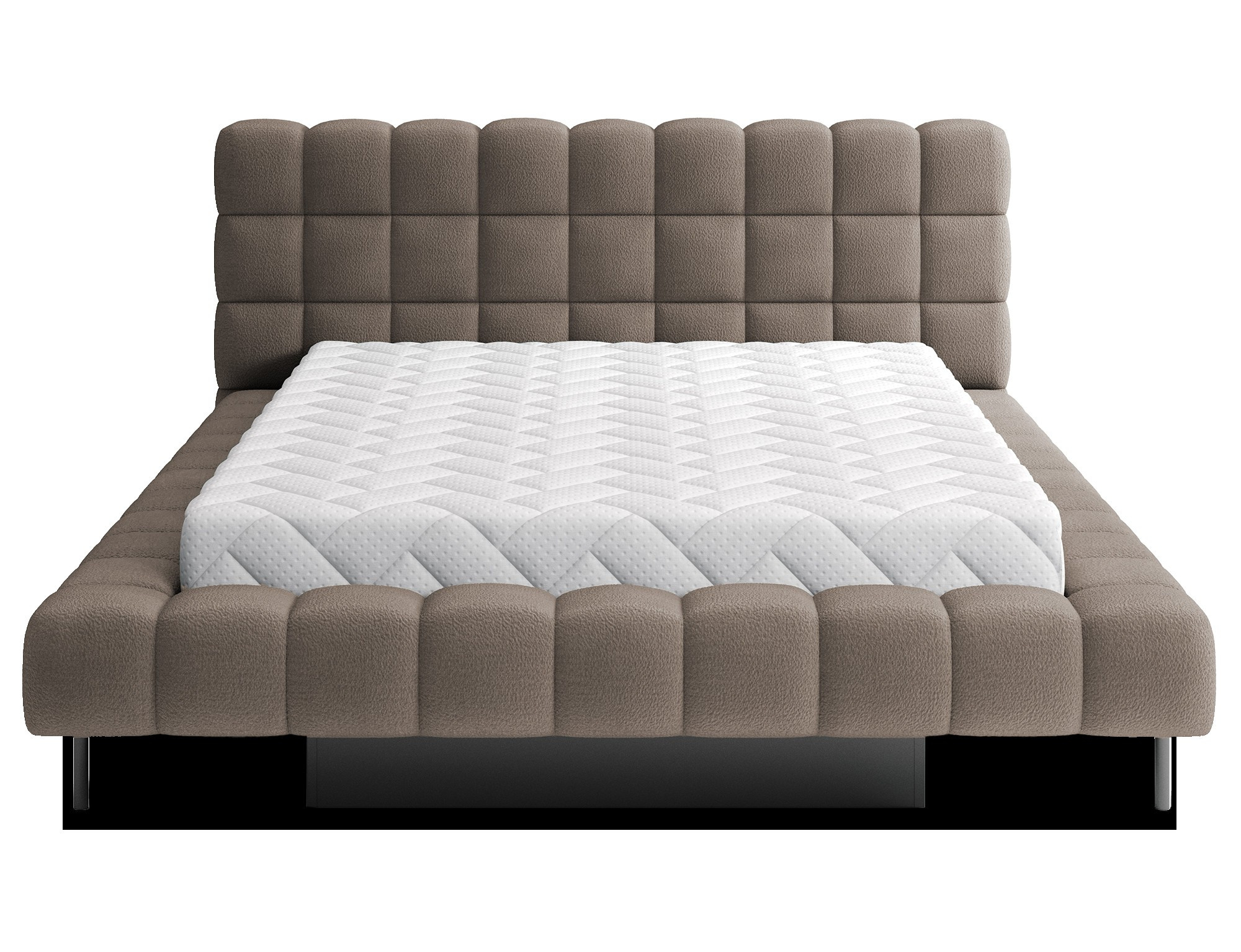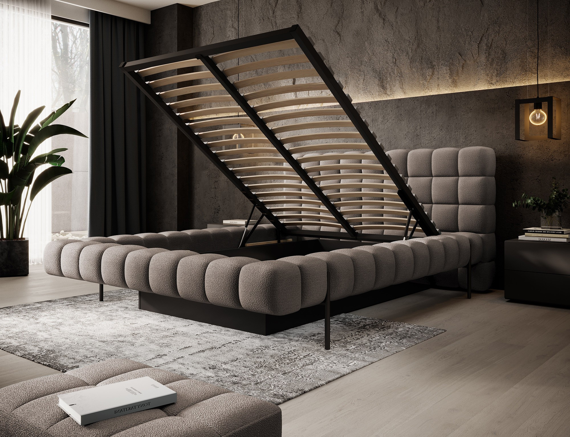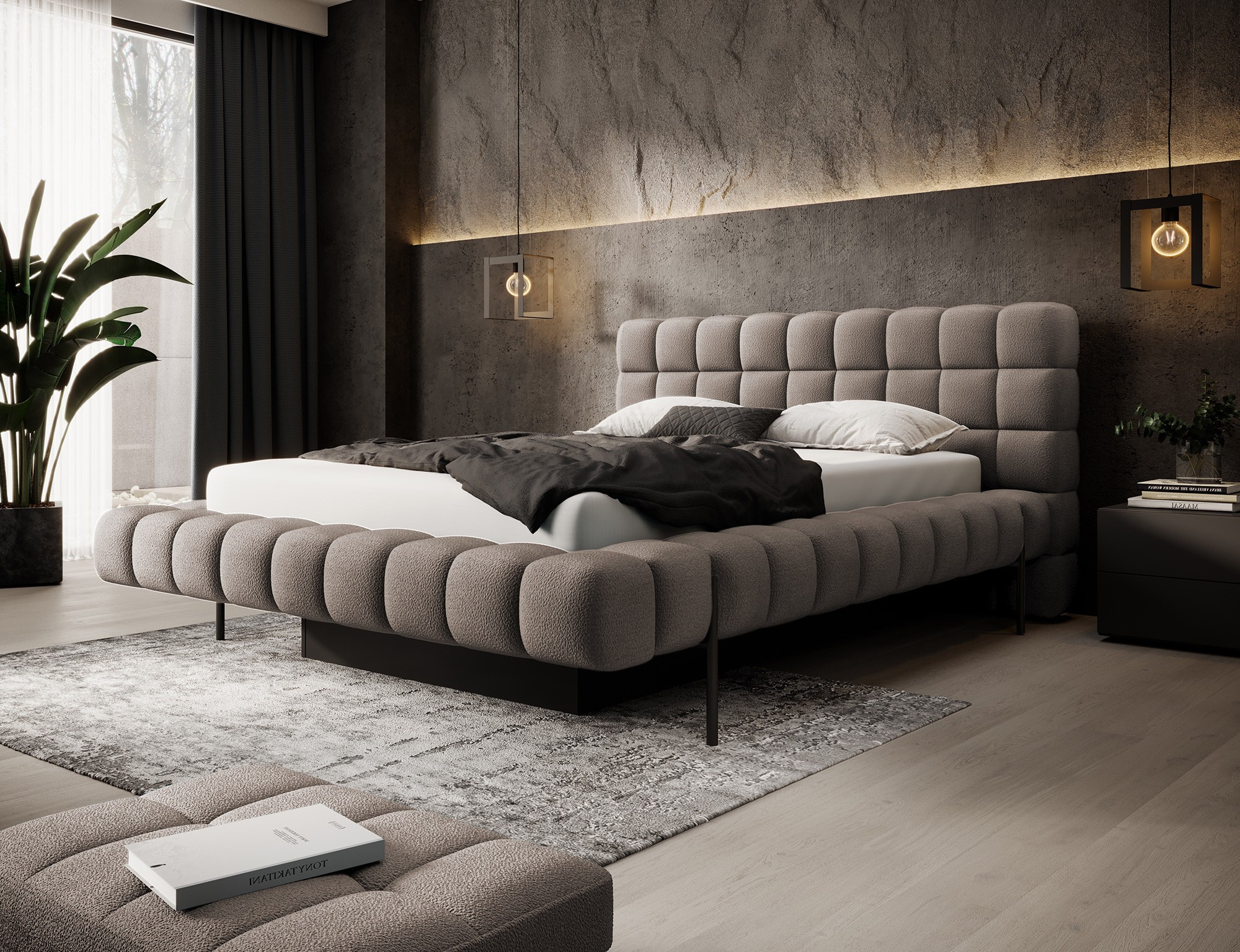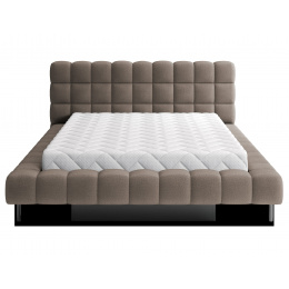The Magentta bed combines modern design, functionality, and exceptional comfort. Its upholstered backrest adds a touch of elegance and coziness, making it a perfect centerpiece for any bedroom. The sturdy frame and headboard are filled with high-quality T2130 foam, providing excellent support and comfort whether you’re sleeping or relaxing. Available in three sizes: 140 cm, 160 cm, 180 cm, it fits a variety of spaces and personal preferences.The metal frame includes 36 slats, evenly distributing the mattress's weight to enhance durability and provide superior support. The black metal leg ensures a stable base while emphasizing the sleek, minimalist design. A practical storage compartment for bedding offers an efficient solution for organizing duvets, pillows, and other linens, optimizing your bedroom space. The Magentta bed is the ideal choice for those who value modern aesthetics, comfort, and practicality.