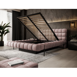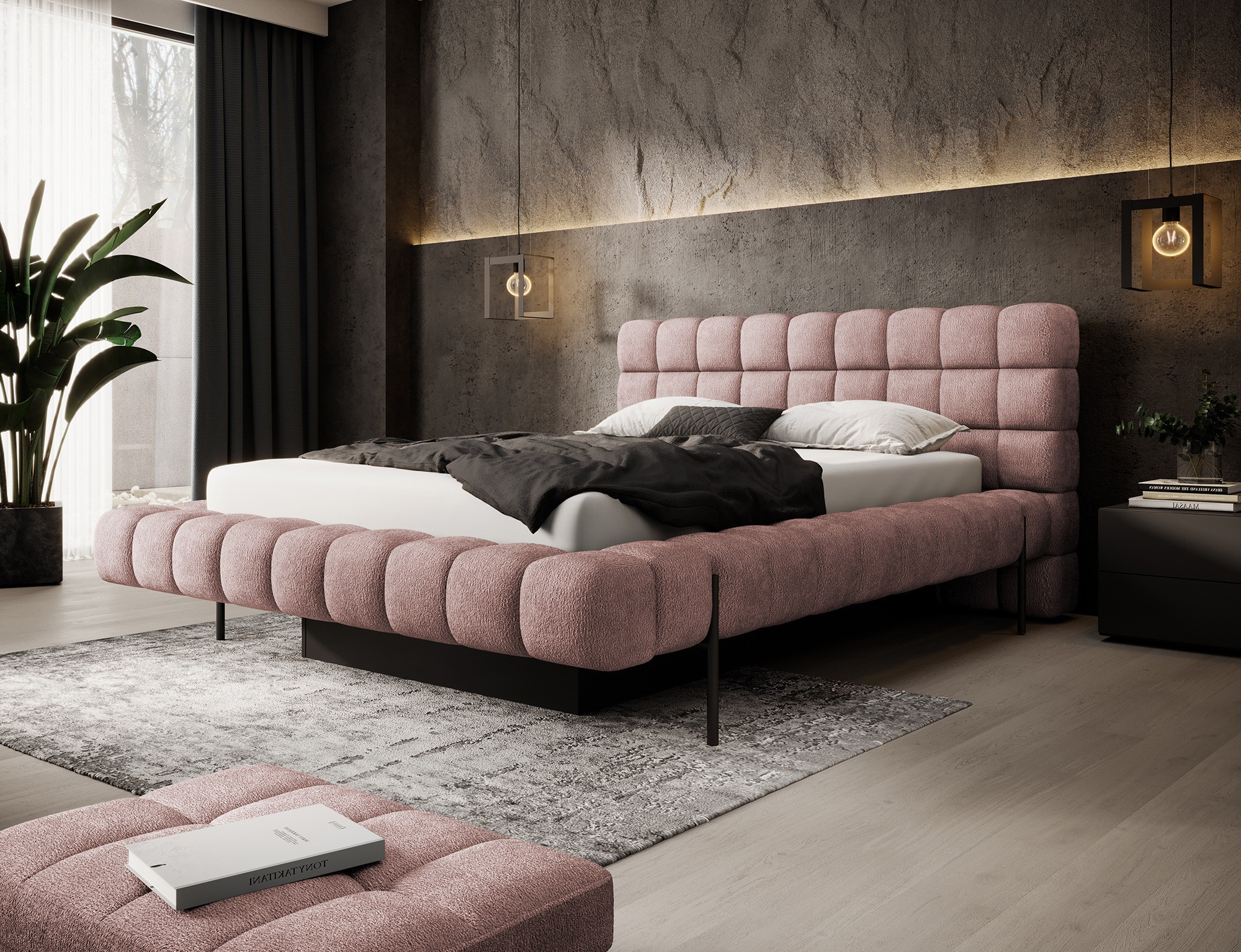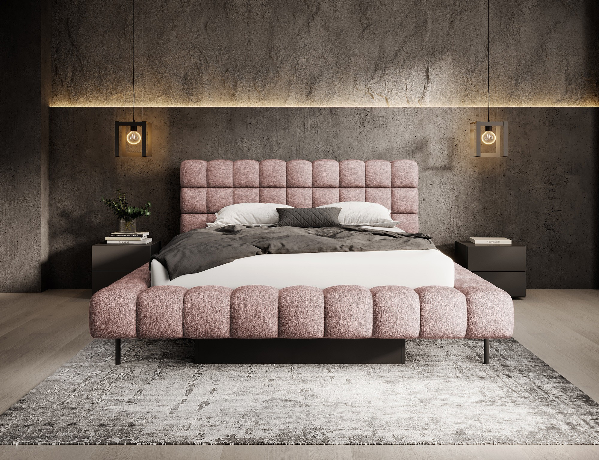 The Magentta bed combines modern design, functionality, and exceptional comfort. Its upholstered backrest adds a touch of elegance and coziness, making it a perfect centerpiece for any bedroom. The sturdy frame and headboard are filled with high-quality T2130 foam, providing excellent support and comfort whether you’re sleeping or relaxing. Available in three sizes: 140 cm, 160 cm, 180 cm, it fits a variety of spaces and personal preferences.The metal frame includes 36 slats, evenly distributing the mattress's weight to enhance durability and provide superior support. The black metal leg ensures a stable base while emphasizing the sleek, minimalist design. A practical storage compartment for bedding offers an efficient solution for organizing duvets, pillows, and other linens, optimizing your bedroom space. The Magentta bed is the ideal choice for those who value modern aesthetics, comfort, and practicality.