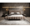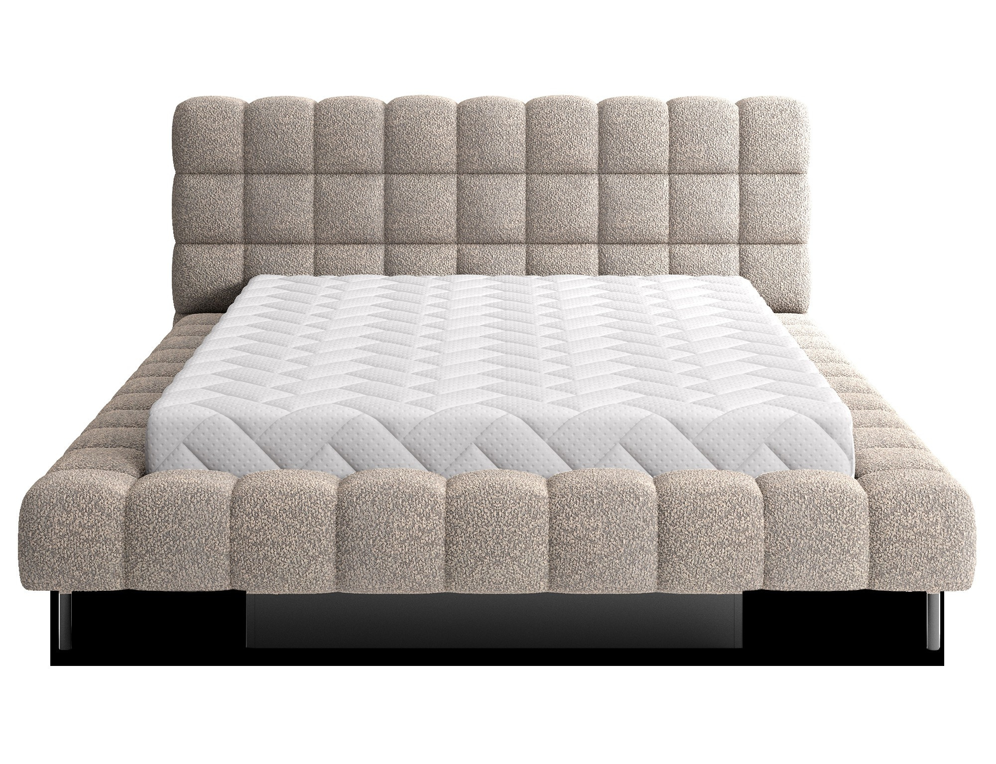 The Magentta bed combines modern design, functionality, and exceptional comfort. Its upholstered backrest adds a touch of elegance and coziness, making it a perfect centerpiece for any bedroom. The sturdy frame and headboard are filled with high-quality T2130 foam, providing excellent support and comfort whether you’re sleeping or relaxing. Available in three sizes: 140 cm, 160 cm, 180 cm, it fits a variety of spaces and personal preferences.The metal frame includes 36 slats, evenly distributing the mattress's weight to enhance durability and provide superior support. The black metal leg ensures a stable base while emphasizing the sleek, minimalist design. A practical storage compartment for bedding offers an efficient solution for organizing duvets, pillows, and other linens, optimizing your bedroom space. The Magentta bed is the ideal choice for those who value modern aesthetics, comfort, and practicality.