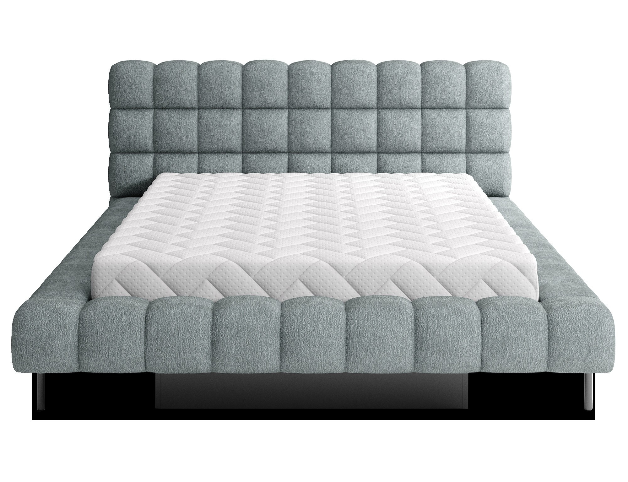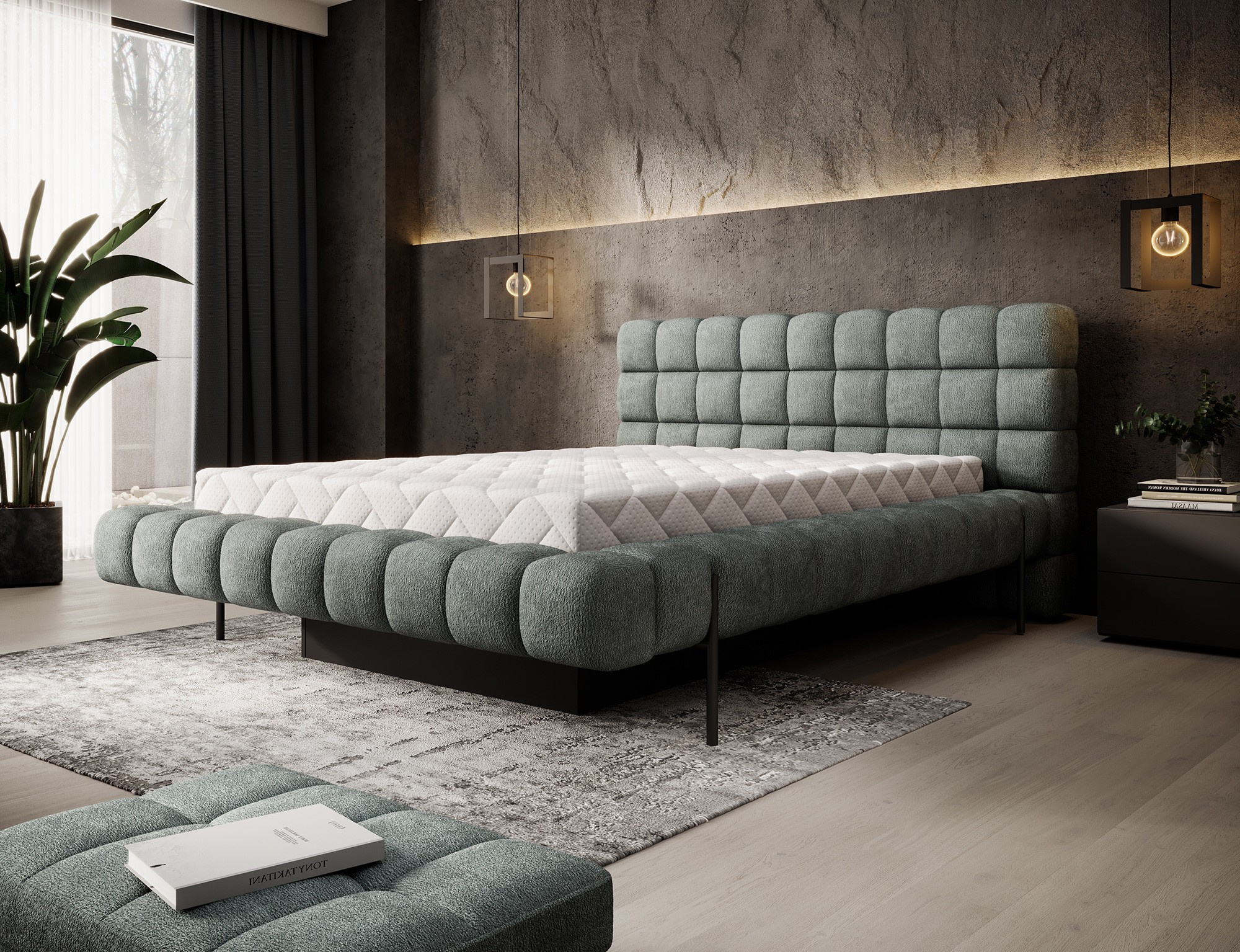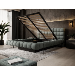 The Magentta bed combines modern design, functionality, and exceptional comfort. Its upholstered backrest adds a touch of elegance and coziness, making it a perfect centerpiece for any bedroom. The sturdy frame and headboard are filled with high-quality T2130 foam, providing excellent support and comfort whether you’re sleeping or relaxing. Available in three sizes: 140 cm, 160 cm, 180 cm, it fits a variety of spaces and personal preferences.The metal frame includes 36 slats, evenly distributing the mattress's weight to enhance durability and provide superior support. The black metal leg ensures a stable base while emphasizing the sleek, minimalist design. A practical storage compartment for bedding offers an efficient solution for organizing duvets, pillows, and other linens, optimizing your bedroom space. The Magentta bed is the ideal choice for those who value modern aesthetics, comfort, and practicality.