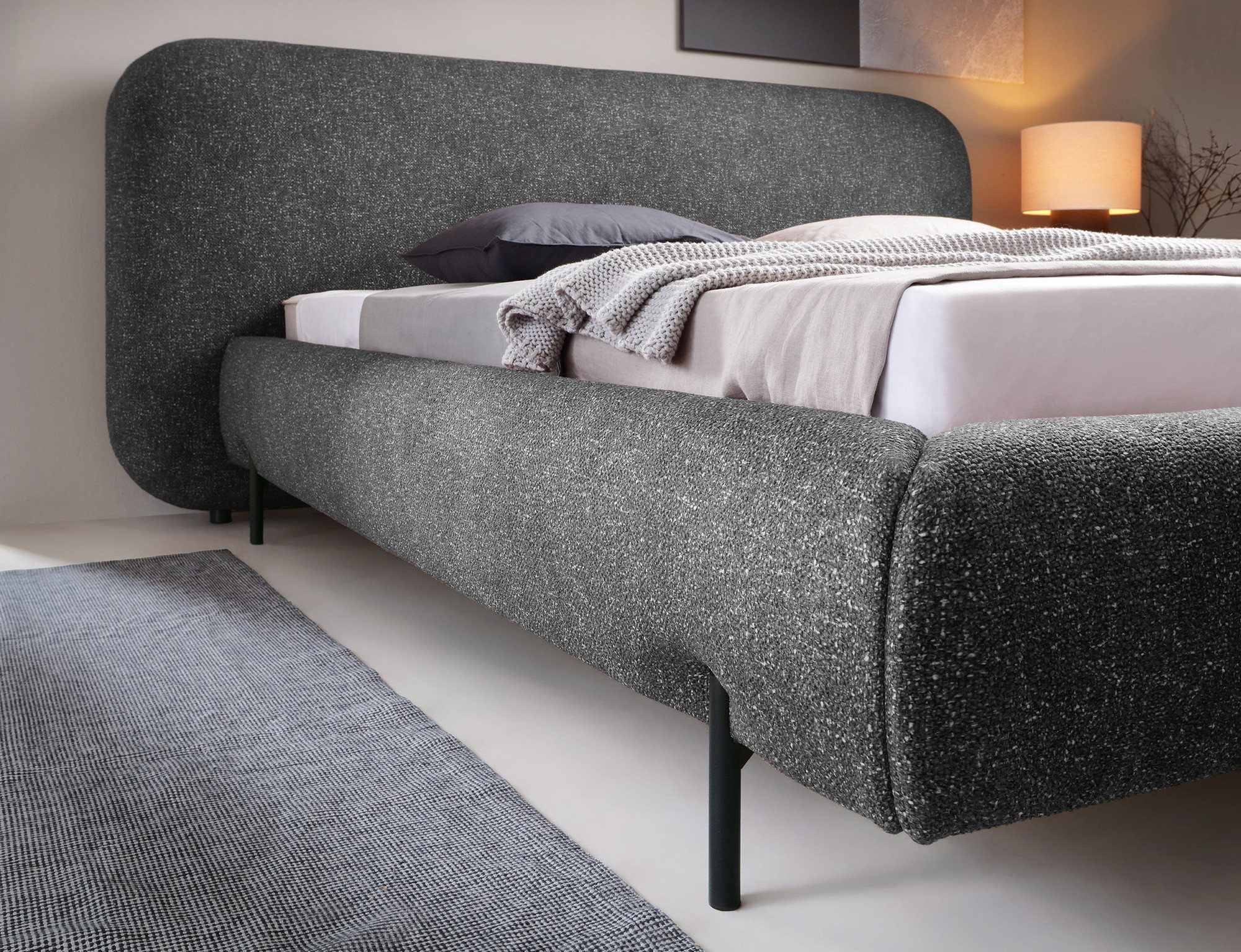 The Pointt bed is a stylish and modern piece of furniture made from high-quality T2130 foam, offering durability and comfort. It features sturdy black metal legs that give it an elegant and contemporary character, along with a practical storage box, perfect for storing bedding. The metal frame ensures stability, while the upholstered headboard adds a touch of sophistication. With a mattress depth of 6 cm set into the frame, it stands out with its minimalist design. The mattress is not included, allowing you to choose the perfect model for your needs. Available in three sizes: 140x200, 160x200, and 180x200, it adapts to various spaces, making the Pointt bed an excellent choice for any modern bedroom, combining functionality with exceptional style.