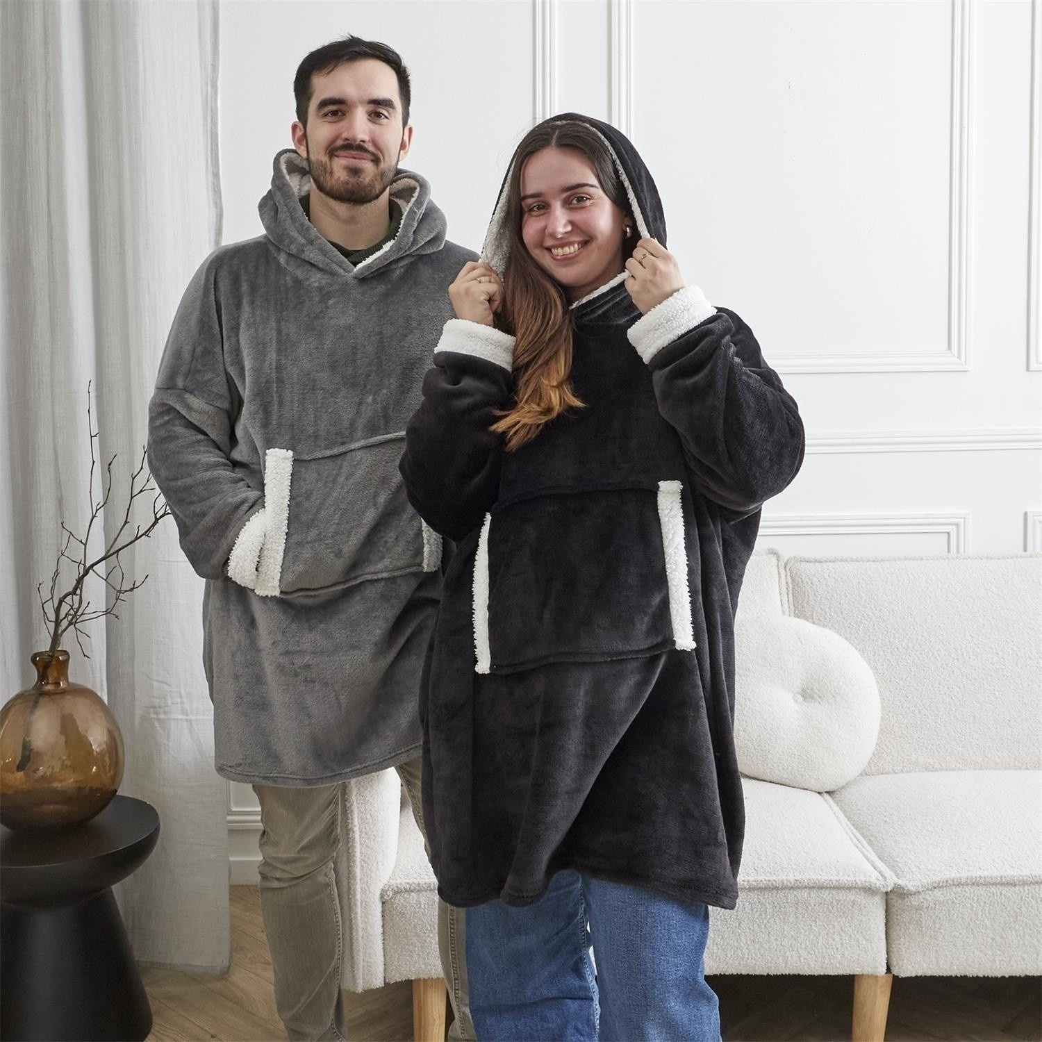 A hosszú sherpa pulóver ideális takaró a hosszú téli estékre. A snuddie pulóver kapucnival és elülső zsebbel van ellátva. Nagyon kellemes és meleg tapintású anyag garantálja a hosszú, kényelmes filmestéket. Mosás legfeljebb 30 fokon. Ne vasaljon. Szövet súlya 240g/m2, anyag 100% poliészter