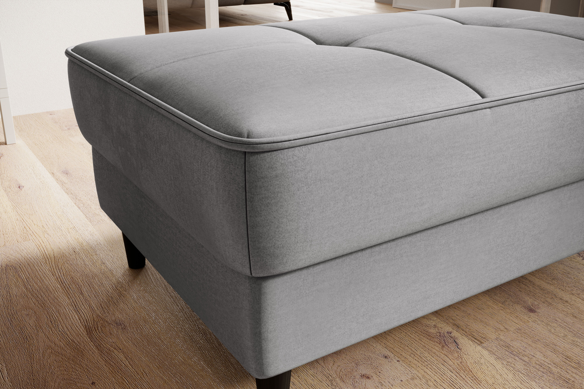 The Bellis model is our high-quality proposal which will change your interior arrangement for the better. The wide, cosy seat of this piece of furniture allows you to lounge comfortably. Its minimalist form and subtle quilting work exceptionally well with modern interior styles. The interior of Bellis is equipped with a special mechanism that allows for opening it. Bellis can be used as an additional area to store things. The pouffe is made only of high-quality materials: highly elastic HR foam, T2130 foam and B-type corrugated spring. Together, these components make the offered product very bouncy. The pouffe's legs are made of solid wood. They provide it with adequately high stability and make its light shape pleasant to the eye.